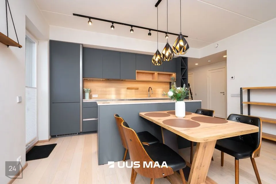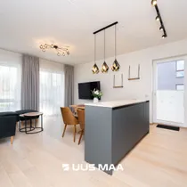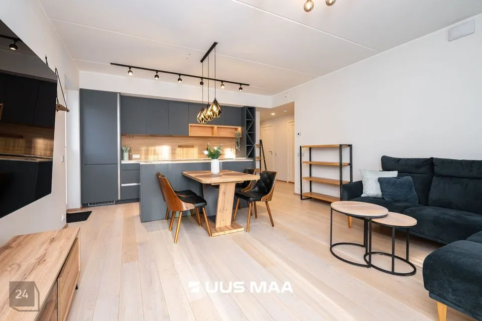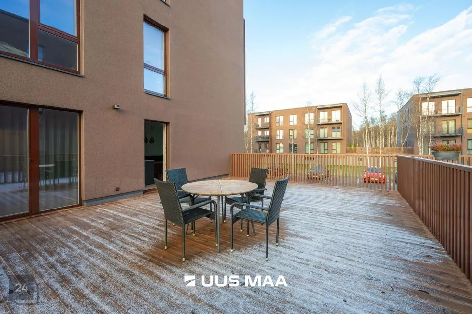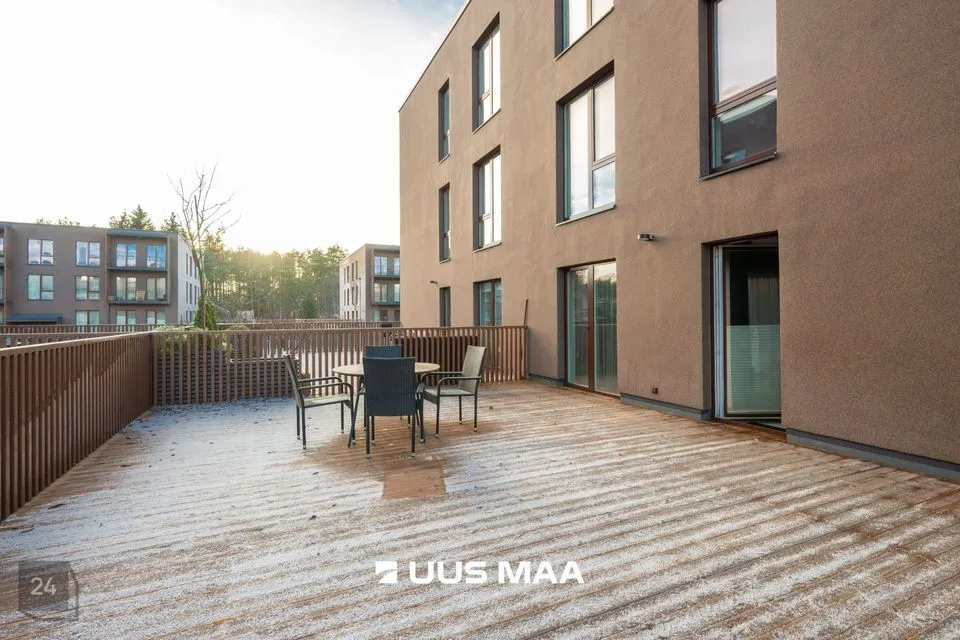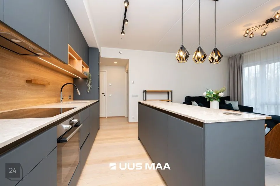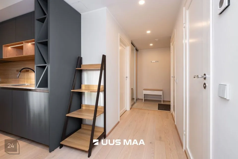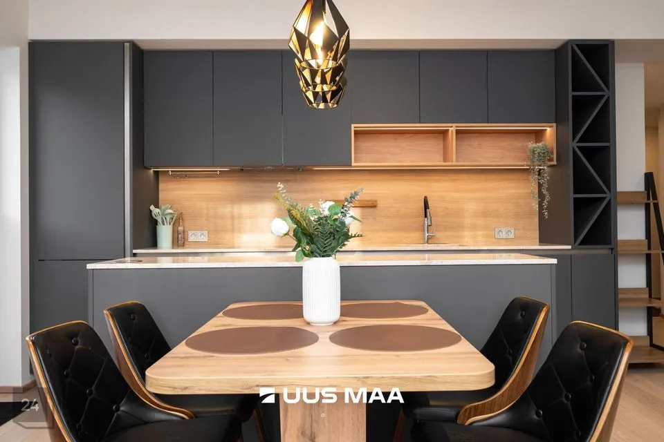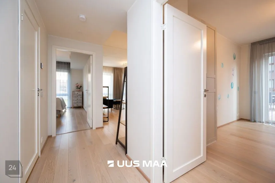 Korteri pindala on 67,7 m², millele lisandub suurepärane 48.8 m² suurune terrass. Planeering on läbimõeldud ja funktsionaalne: esikus on sisseehitatud lükandustega garderoob; avatud köögiga elutuba on ruumikas ja valgusküllane, pakkudes piisavalt ruumi nii köögis saarele, söögilauale kui ka elutoa mööblile. Köök on valminud eritellimusel ja varustatud integreeritud tehnikaga. Elutoast ning ühest magamistoast pääseb avarale terrassile, mis sobib ideaalselt nii puhkamiseks kui ka külaliste võõrustamiseks. Magamistoad asuvad eraldi, vannituba on täielikult sisustatud ja seal asub nii pesumasin kui ka kuivati.