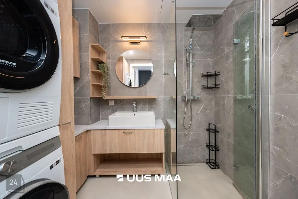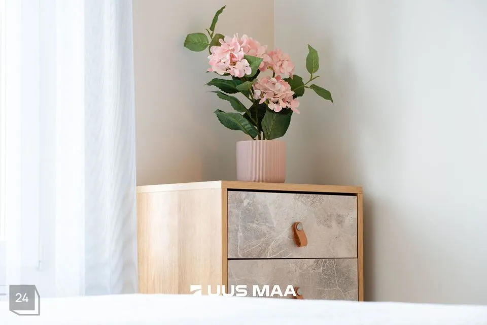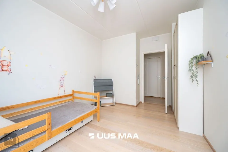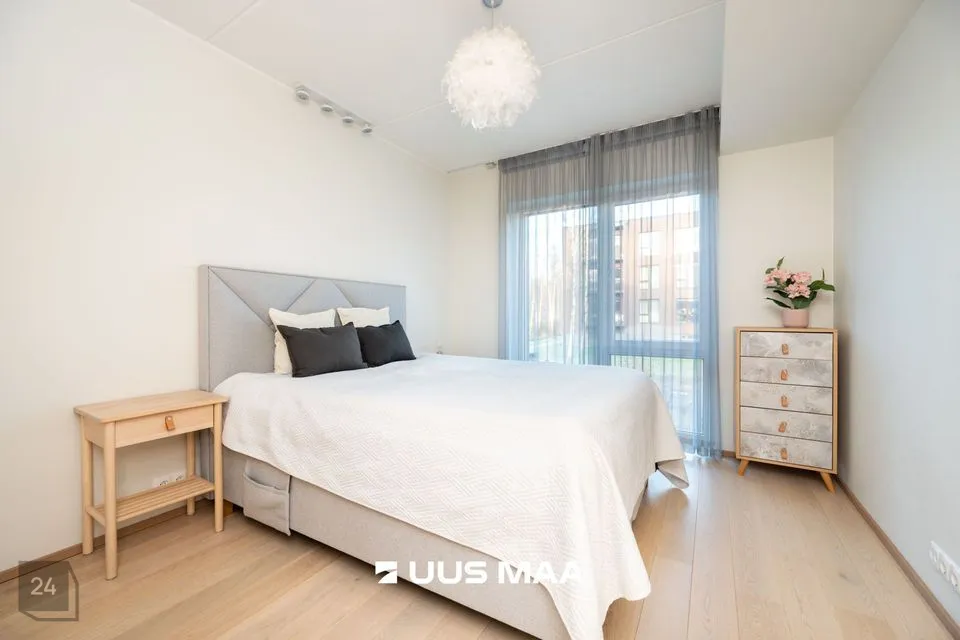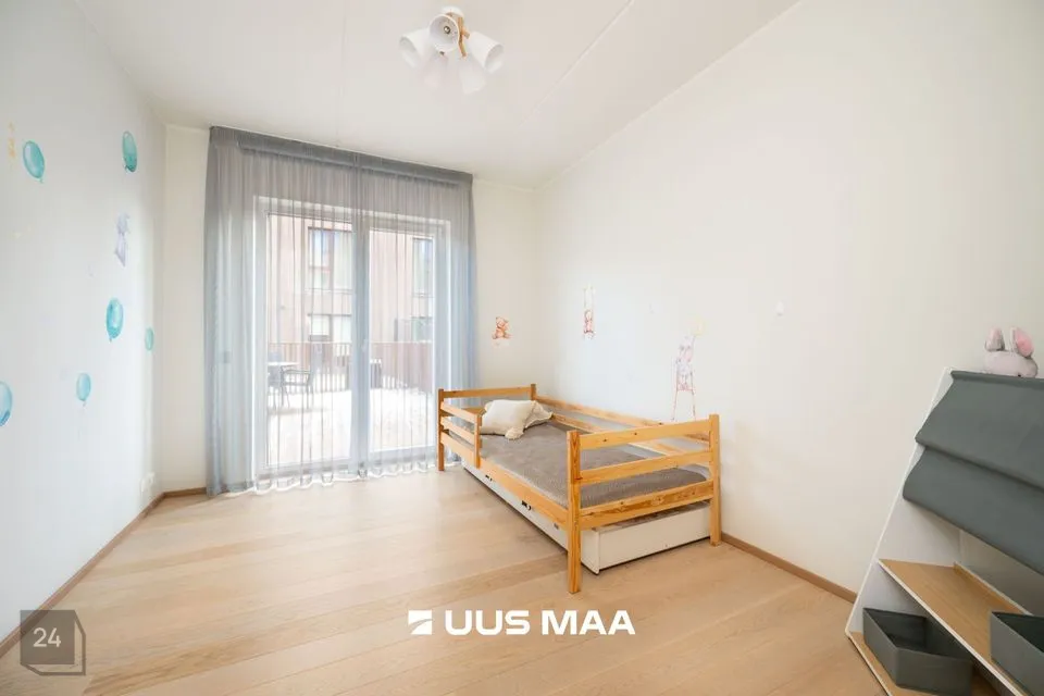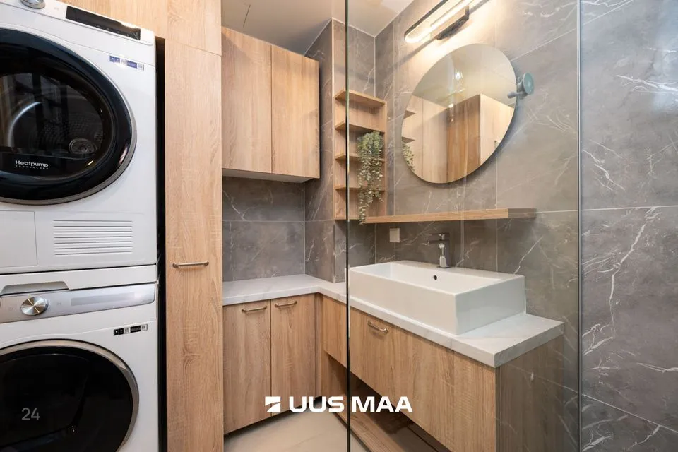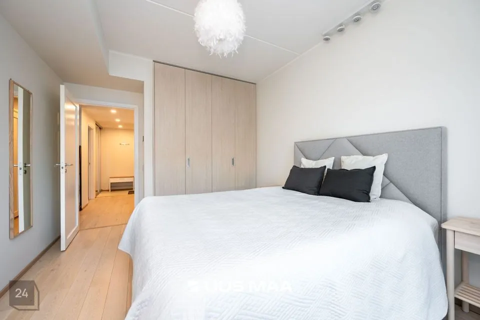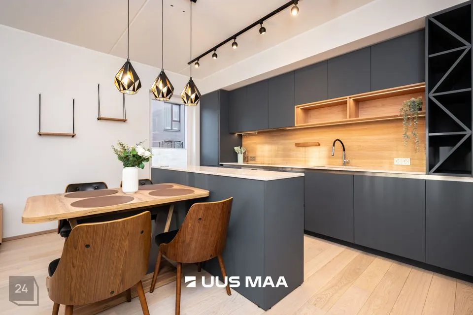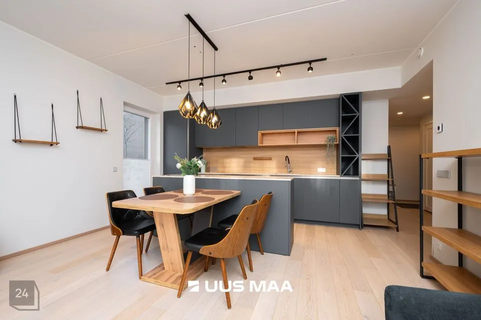Korteri pindala on 67,7 m², millele lisandub suurepärane 48.8 m² suurune terrass. Planeering on läbimõeldud ja funktsionaalne: esikus on sisseehitatud lükandustega garderoob; avatud köögiga elutuba on ruumikas ja valgusküllane, pakkudes piisavalt ruumi nii köögis saarele, söögilauale kui ka elutoa mööblile. Köök on valminud eritellimusel ja varustatud integreeritud tehnikaga. Elutoast ning ühest magamistoast pääseb avarale terrassile, mis sobib ideaalselt nii puhkamiseks kui ka külaliste võõrustamiseks. Magamistoad asuvad eraldi, vannituba on täielikult sisustatud ja seal asub nii pesumasin kui ka kuivati.
