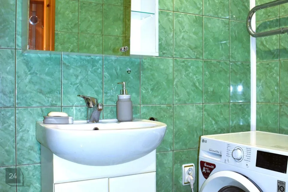 WC ja vannituba ühine. Soe vesi selles majas on tsentraalne. Olemas pesumasin.
