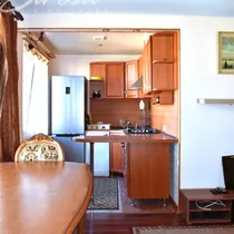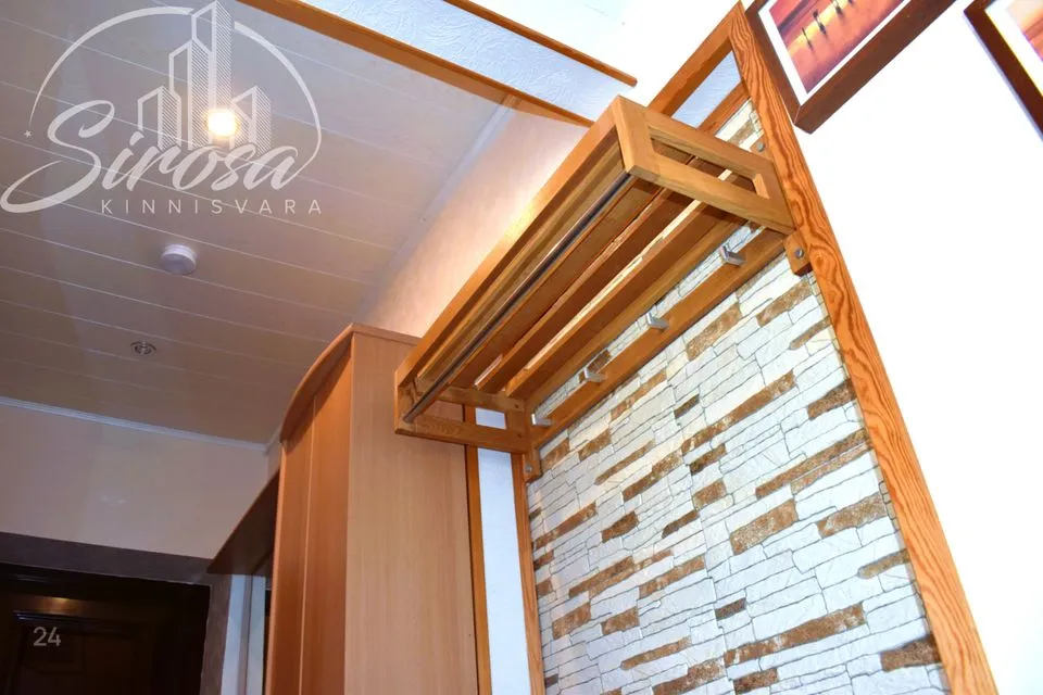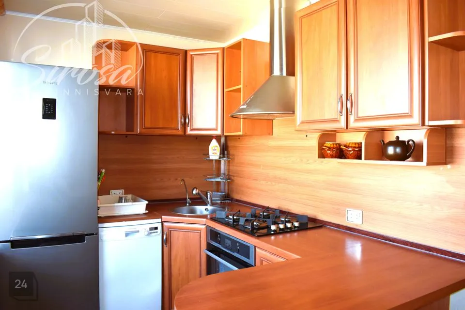 Magamistuba on eraldi, elutuba on läbikäidav ning ühenduses avatud köögiga. Köögis gaasipliit elektriahjuga, õhupuhasti, nõudepesumasin, külmik.
