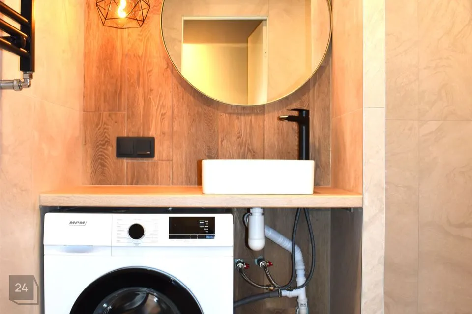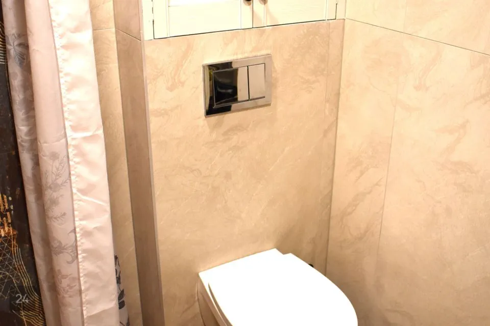 WC ja dušširuum ühine, olemas pesumasin. Soe vesi selles korteris on elektriboilerist.