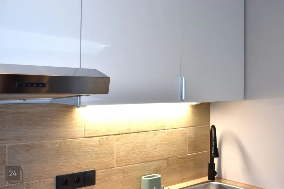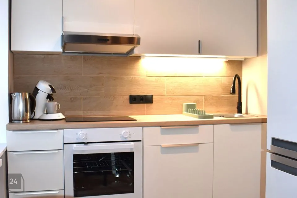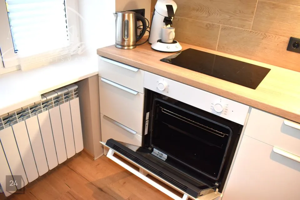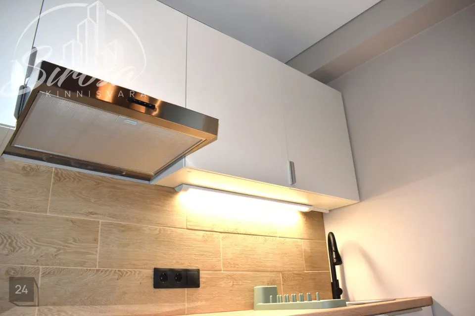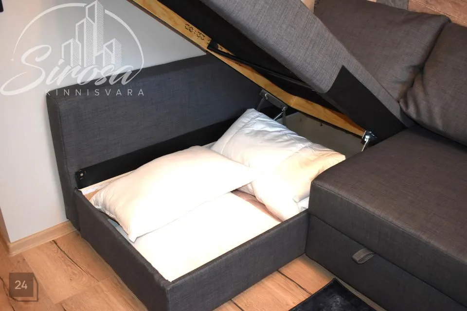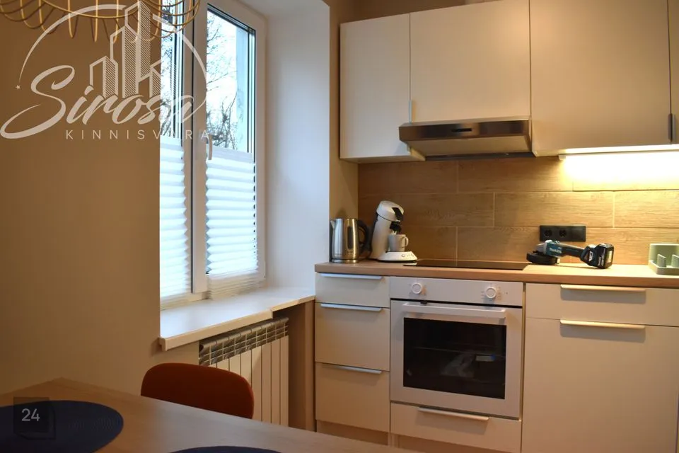 Elutuba on läbikäidav ning ühenduses avatud köögiga. Köögis integreeritud tehnikaga (elektripliit elektriahjuga, õhupuhasti) mööbel. Ruumikas külmik. Olemas kohvimasin, söögiriistad.