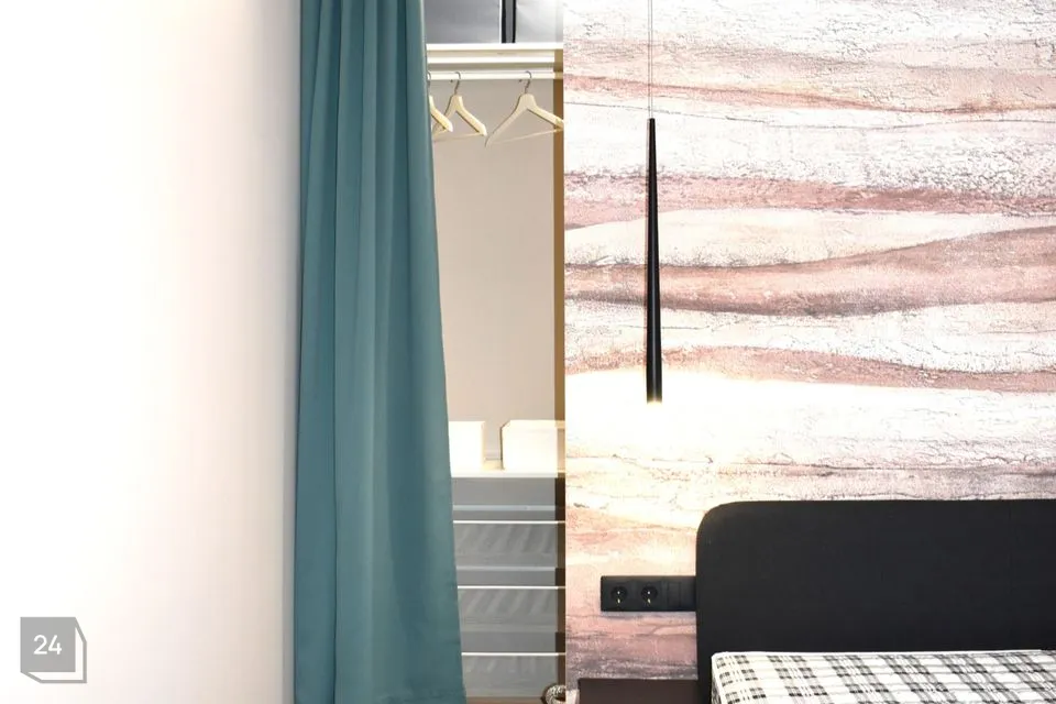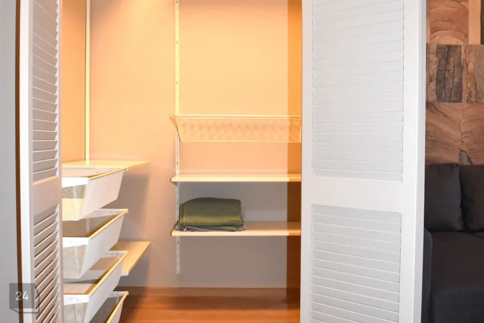 Eraldi magamistuba, millest pääs garderoobi. Magamistoas kaheinimesevoodi. Olemas padjad, tekid.