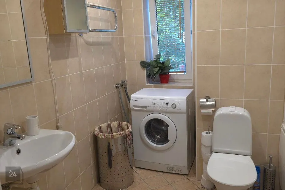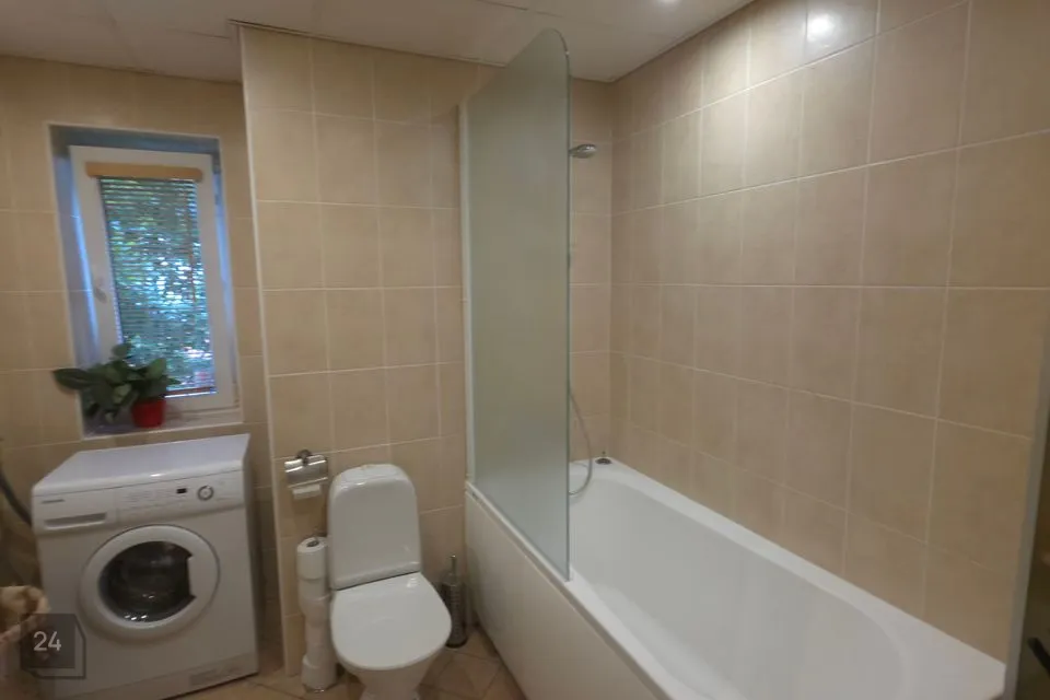vannitoas on aken (!), vann, wc, vannitoamööbel, suur pesumasin, põrandaküte.