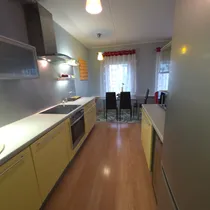 köögis on köögimööbel, suur külmik, veinikülmik, el. pliit, ahjukapp, suur nõudepesumasin, õhupuhasti, mikrolaineahi, toster, kõik vajalikud kööginuõd;