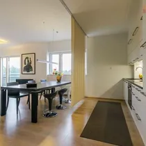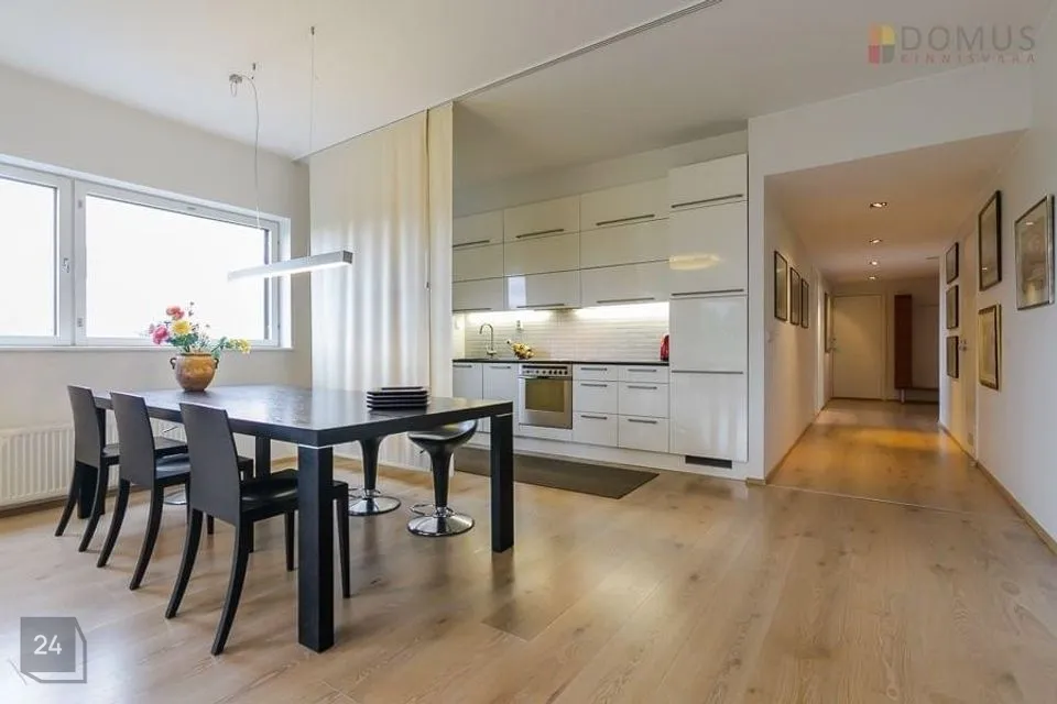 Korteri koosseisu kuuluvad: esik, avatud planeeringuga, prantsuse rõduga elutuba-köök, 3 eraldi magamistuba , panipaik/garderoob, tualett , saunaga duširuum ja kindel autokoht garaažis. Korteris on olemas kõik eluks vajalikud esmatarbed. Eraldi asetsev panipaik/garderoob on sisustatud korvriiulitega.