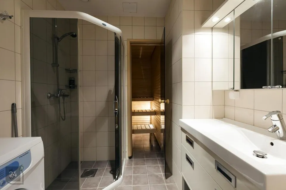 Eraldi tualett ja vannituba koos sauna ja duširuumiga.