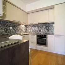 Avatud köök on sisustatud integreeritud tehnikaga ning olemas on kõik vajalik(nõudepesumasin, väljatõmme, ahi, pliit, külmik) Kenasti läbimõeldud lahendus ka baarilett/laua osas, mis eraldab köögi ja elutoa vahelise osa.