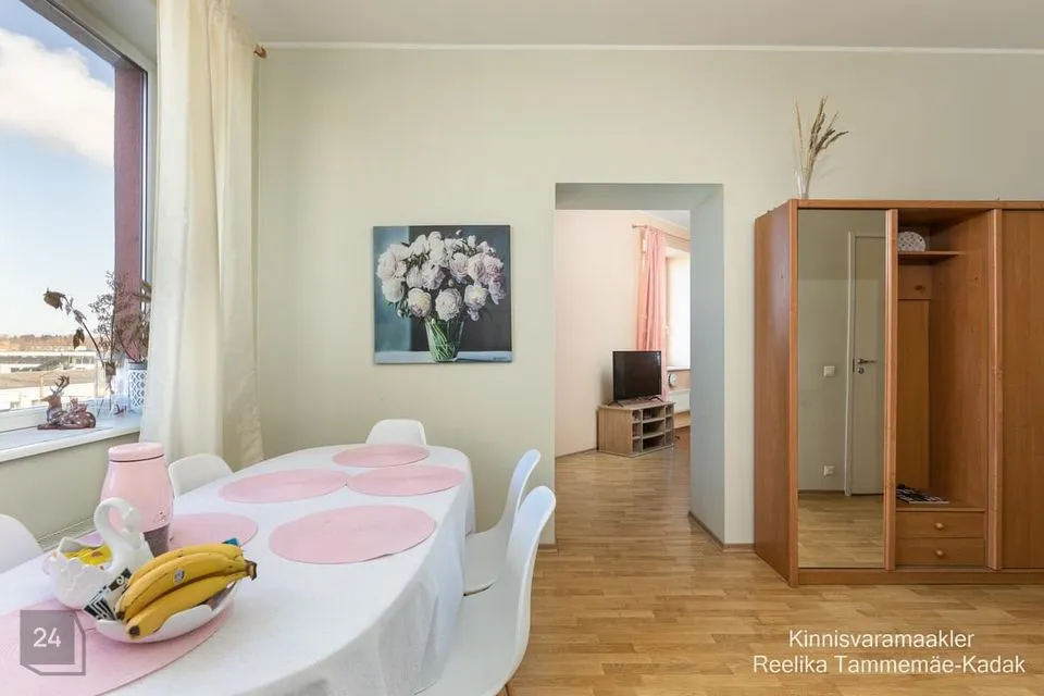 Sisustus: Üürniku kasutusse saab köögimööbel koos tehnikaga (pliit, ahi, õhupuhasti ning külmkapp), suur söögilaud (saab muuta väiksemaks või suuremaks) koos toolidega, riidekapp esikus ning fotodelt nähtav sisustus magamistoast. Duširuumis on praktiliselt uus pesumasin.