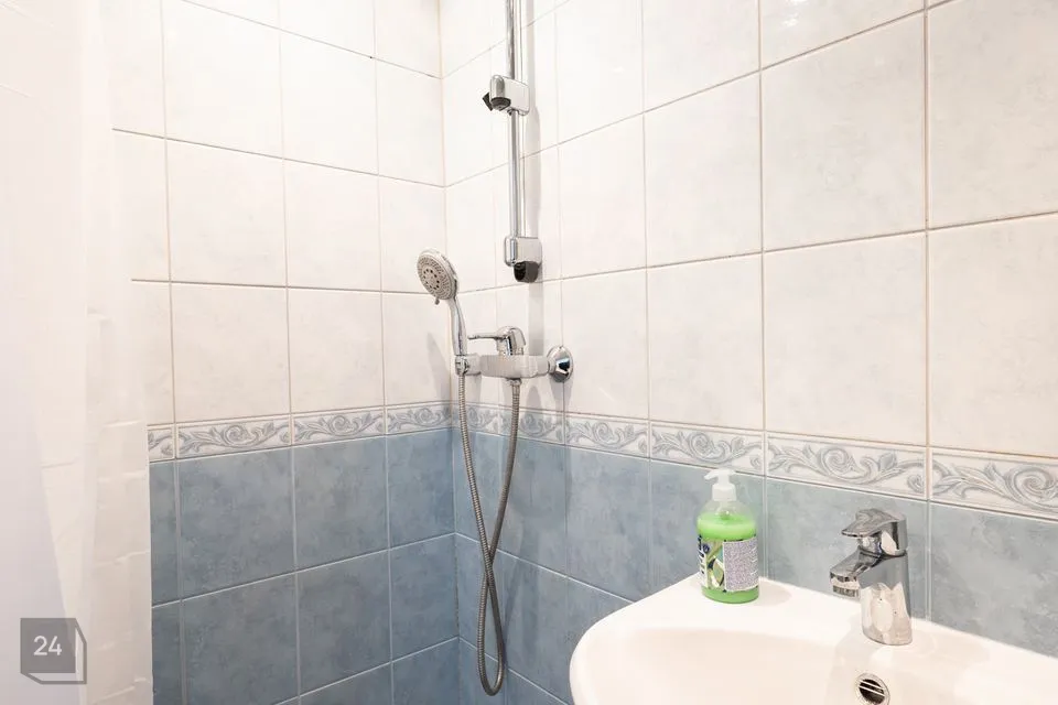 Vannituba- ja tualettruum on koos, pesemiseks kasutatakse dušinurka.