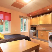 Korteris on köögimööbel koos vajaliku tehnikaga, pesumasin, mahukas seinakapp, tugitool, kohvilaud ja voodi. Vannitoas dušinurk ja sooja vett andev boiler.