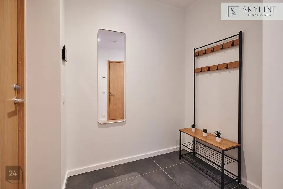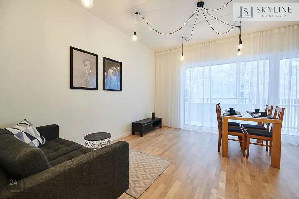 Sellesse väga hea planeeringuga korterisse sisenedes jõuame esikusse, kus on eraldi nurk ja nagikomplekt väliriietele ja jalanõudele. Vasakule avaneb suure maast-laeni aknaga elutuba/köök, kust pääseb mõnusale 8.6 m2 suurusele rõdule. Vaade on üliprivaatne ning akendest näeb mõnusat parki. Esikust paremale jääb möbleeritud magamistuba pimendavate kardinatega. Otse asub ruumikas vannituba. Piltidel nähaolev mööbel jääb korterisse ning kasutatud on väga kvaliteetseid brände ja materjale. Korteris on vesipõrandaküte ja igas toas on eraldi regulaatorid. Vannitoas on ka elektriline põrandaküte, et hoida ruum kütteperioodivälisel ajal soe. Lisaks on majas soojustagastusega sundventilatsioonisüsteem, mis tagab hea sisekliima iga ilmaga. Korteri juurde kuulub kinnine ja soe panipaik.