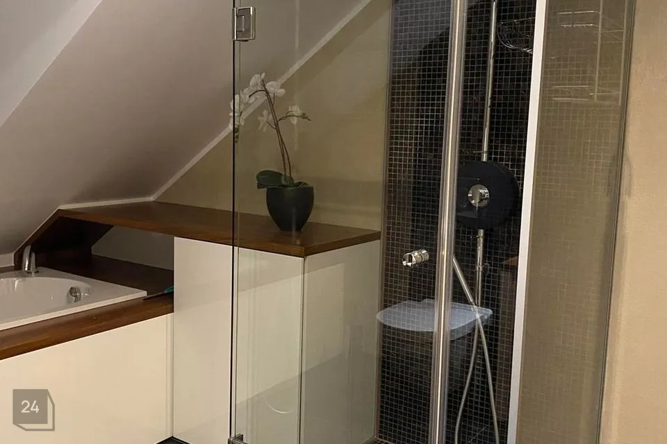 Korter asub maja kolmandal ja katusekorrusel. Esimesel korrusel elutuba koos köögiga, trepihall ning WC. Katusekorrusel 2 magamistuba, avar vannituba ja trepihall (kabinet). Korteri elamispind 85,6 m2, põrandapinda 115 m2.