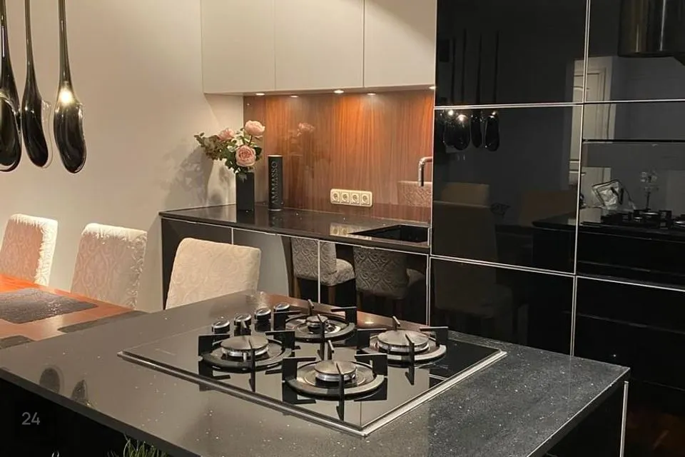 Eritellimusel köök (naturaalne kivitaspind) koos integreeritud külmiku, nõudepesumasina (60 cm), gaasipliidi ja ahjuga. Kööki integreeritud ka 6-kohaline söögilaud.