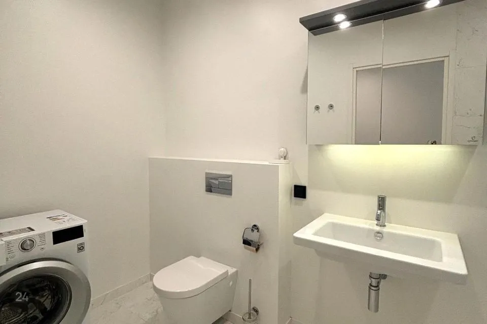 Ruumilahendus: esik, avar vannituba (olemas pesumasin), tualettruum, suur köök koos avatud elutoaga, pääs rõdule (4,5m²), garderoob.