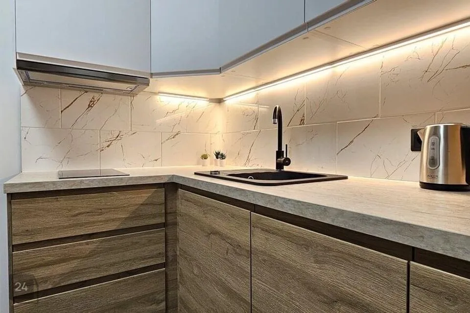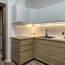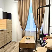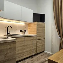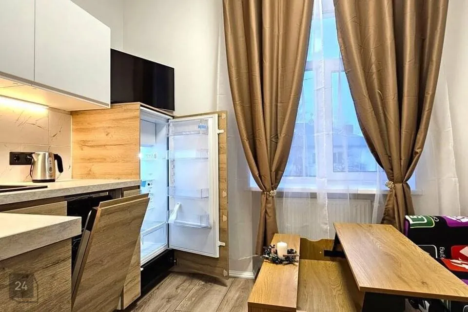 Korteris on kõik eluks vajalik: sisseehitatud köögimööbel integreeritud tehnikaga - nõudepesumasin, külmik, pliit, lahtikäiv diivanilaud, televiisor.