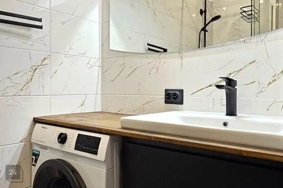 Vannitoas elektripõrandaküte ning asub pesumasin.