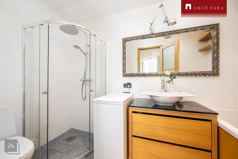 Korteris on olemas kõik eluks vajalik - eritööna tehtud, tammespooniga kaetud jalatsi- ja riidekapid, eksklusiivne Itaalia köögimööbel, nõudepesumasin, induktsioonpliit, pürolüüsiga ahi, pesumasin, Swarovski kristallidega valgustid ja mullivann.