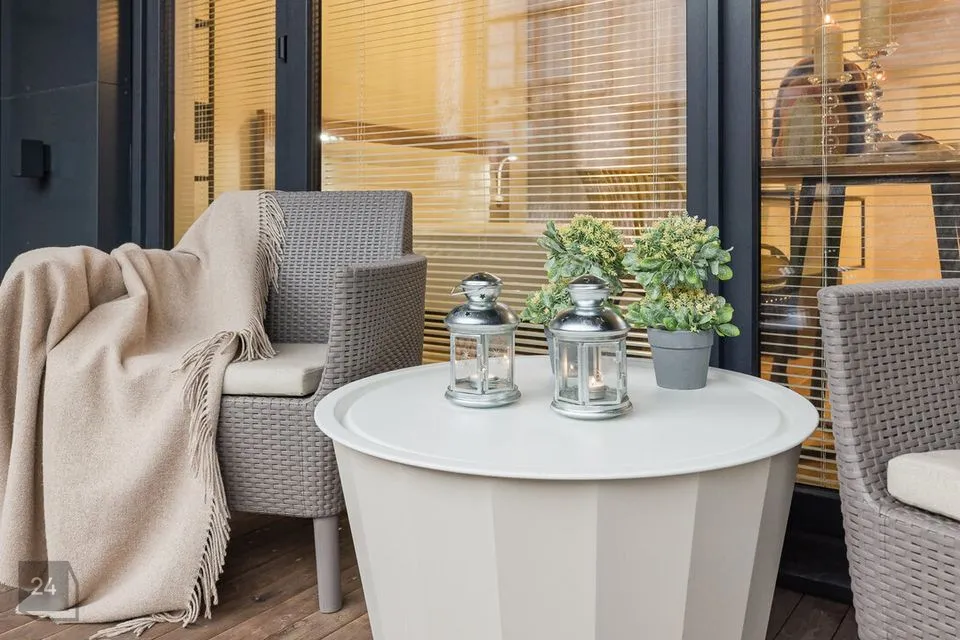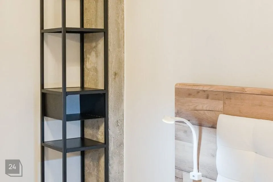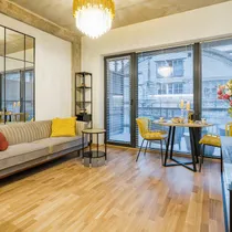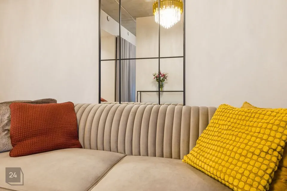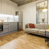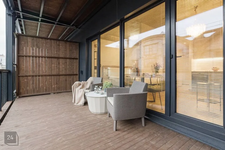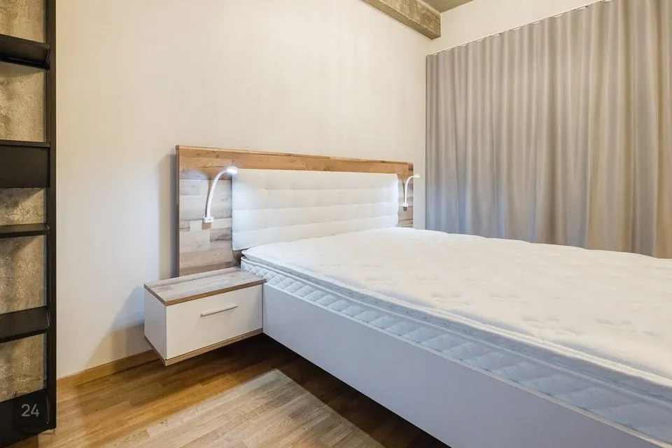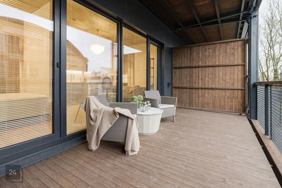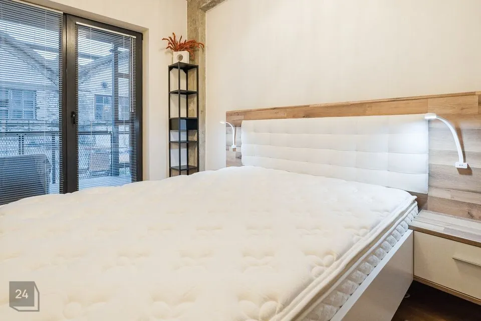 Maast laeni aken ja kõrge lagi annavad korterile avarust ja valgust, magamisala on eraldatud vaheseinaga. Boonuseks on suur, 15,5 m² lõunapoolne rõdu, kus saab mõnusalt aega veeta. Aknast paistavad 1913.a. ehitatud ja alates 2007. aastast muinsuskaitse all olevad, restaureerimist ootavad angaarid.