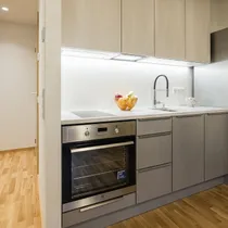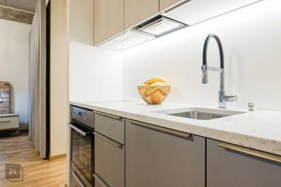 Maitsekalt ja kvaliteetselt sisustatud korteris on Puustelli köök, kus on olemas kõik vajalik - praeahi, pliit, kubu, külmik, nõudepesumasin. Kahes mahukas( elutoas ja esikus) garderoobisüsteemiga kapis jagub piisavalt ruumi kõige vajaliku hoiustamiseks. Vannitoas on paigaldatud Villeroy&Boch sanitaartehnika. Pesu saab pesta samal korrusel asuvas ühiskasutatavas pesuruumis, kus on 2 pesumasinat ja 2 kuivatit-tasuline teenus (10€/kuus).