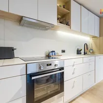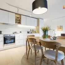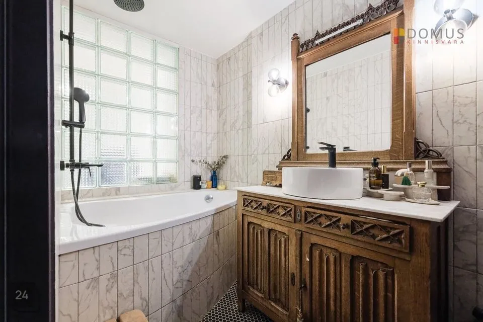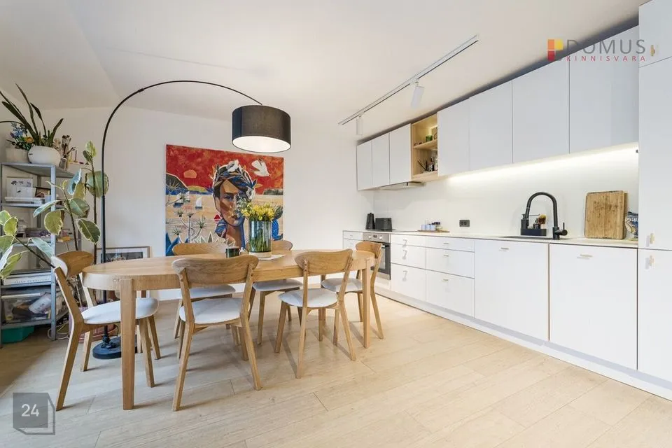 Sisekujunduse lahendused on teostatud arhitektuuribüroo disainprojekti järgi. Siseviimistluses on kasutatud kvaliteetseid viimistlusmaterjale, põrandatel on naturaalsest puidust ühelipiline parkett, seinad krohvitud ja värvitud, uksed on kvaliteetsed vineeruksed. Korter müüakse koos mööbliga ja fotodel näidatud sisseehitatud tehnikaga. Korteri remont on teostatud 2 aastat tagasi. Remondi käigus paigaldati ka uued 3-kordsed plastraamidel pakettaknad.