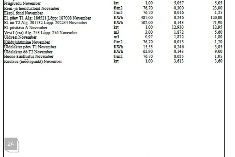 1 kuu ettemaks + tagatisraha + lepingutasu.