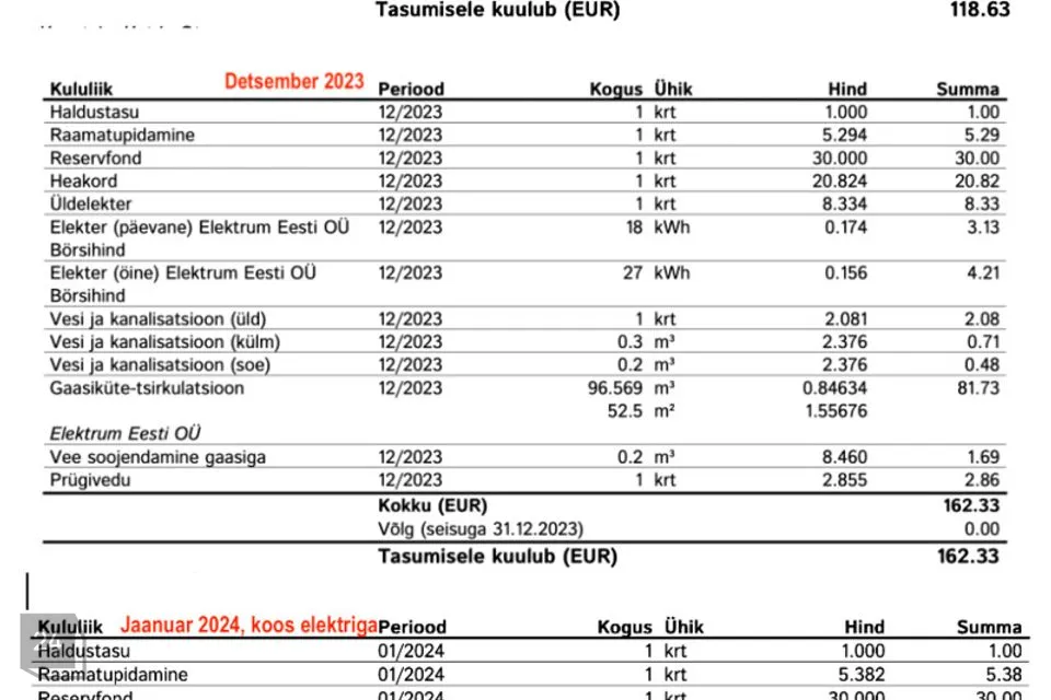 Kommunaalkulud: Hea klient, palun leia kolme kuu kommunaalkulude väljavõte fotode juurest.