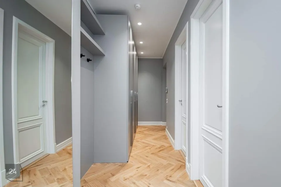 Korteri koosseisu kuulub avar esik koos mahukate garderoobikappidega, köök-elutuba, magamistuba, vannituba ja panipaiga ruum.