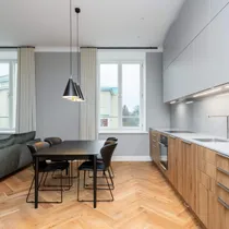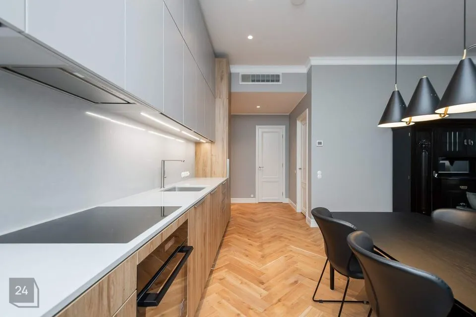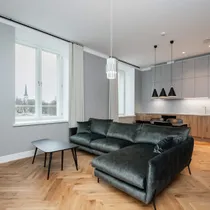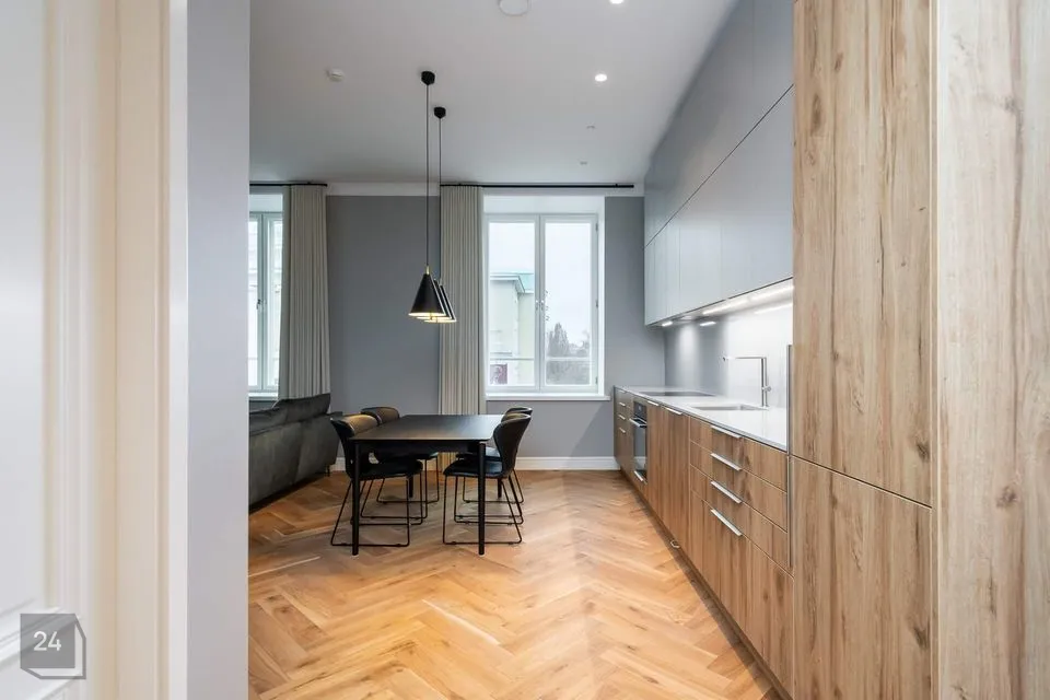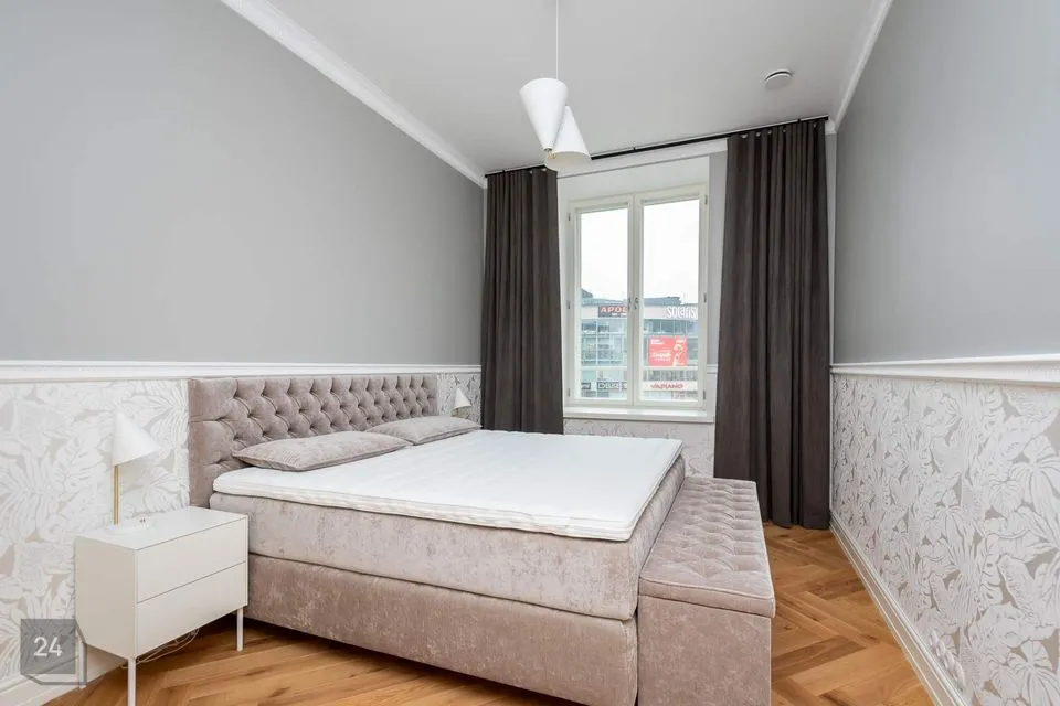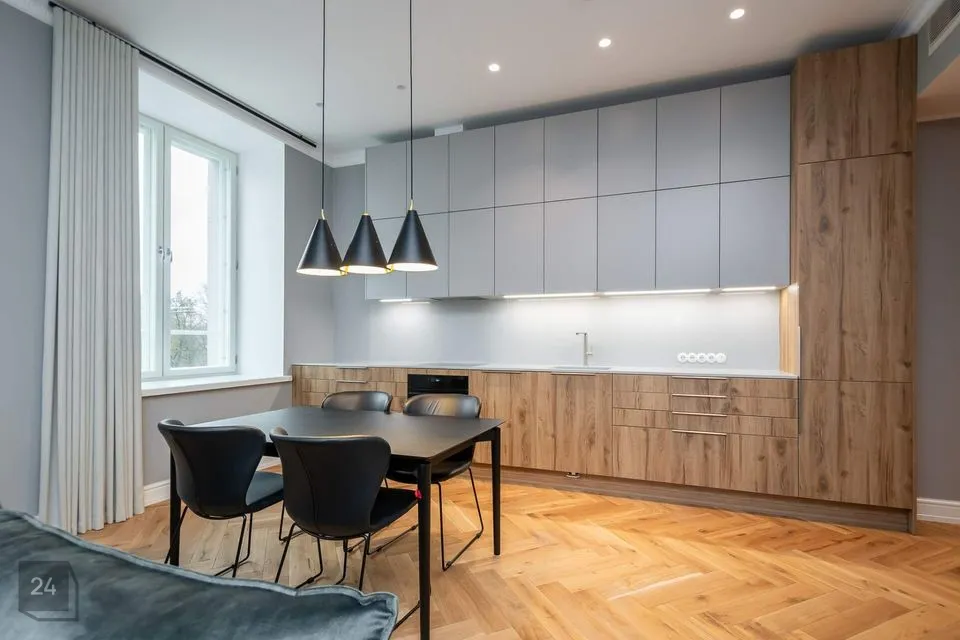 Korteris on kõrged laed ja vaated avanevad Tammsaare pargile ja Estonia teatrile.