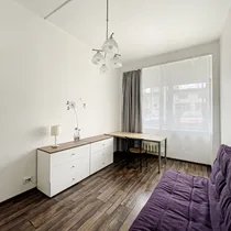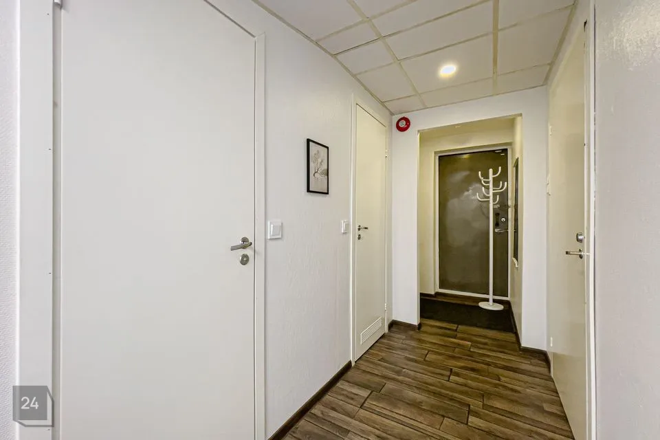 Korter paikneb 5-korruselise ärihoone 1. korrusel, mis tähendab õhtuti ja nädalavahetustel rahulikumat õhkkonda. Korteri koosseisu kuulub 4 eraldi tuba, köök, duširuum, WC ja esik. Korter on läbi maja planeeringuga - kaks tuba jäävad vaatega maja ette ning kaks tuba vaatega maja taha, köök asub korteri keskel.