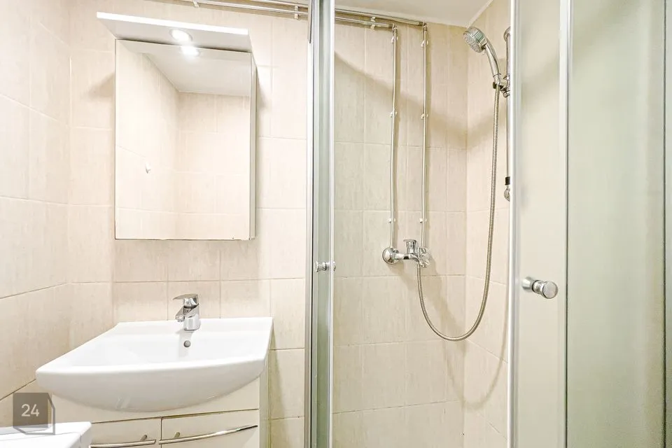 Korter on sisustatud piltidel nähtava mööbliga. Tehnikast on kasutada eraldiseisev elektripliit ahjuga, köögikubu, nõudepesumasin ja külmkapp. Duširuumis on olemas ka uus pealtlaetav pesumasin.