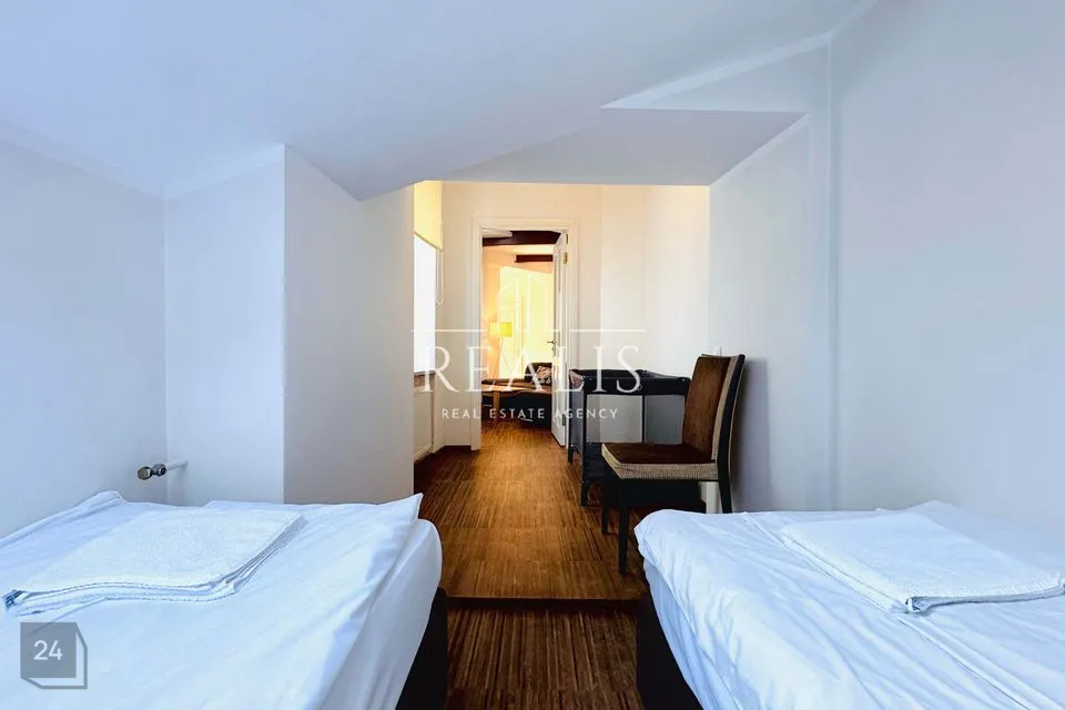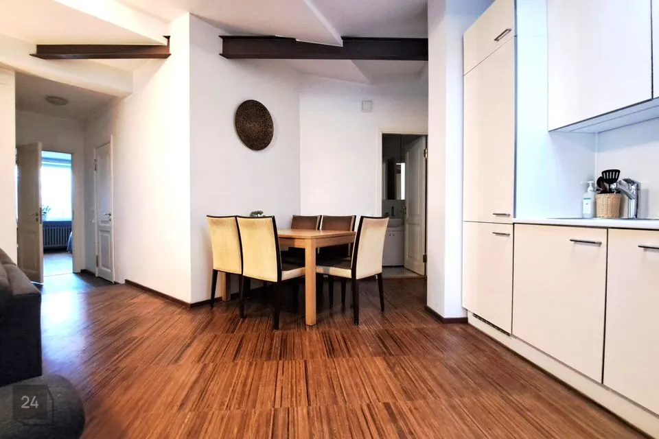 Korter on möbleeritud, kogu piltidel nähtav mööbel jääb sisse. Lisaks on olemas voodipesud, rätikud, toidunõud ja söögiriistad. Köögimööblisse on integreeritud tehnika (külmkapp, nõudepesumasin, pliit, ahi ja kubu).