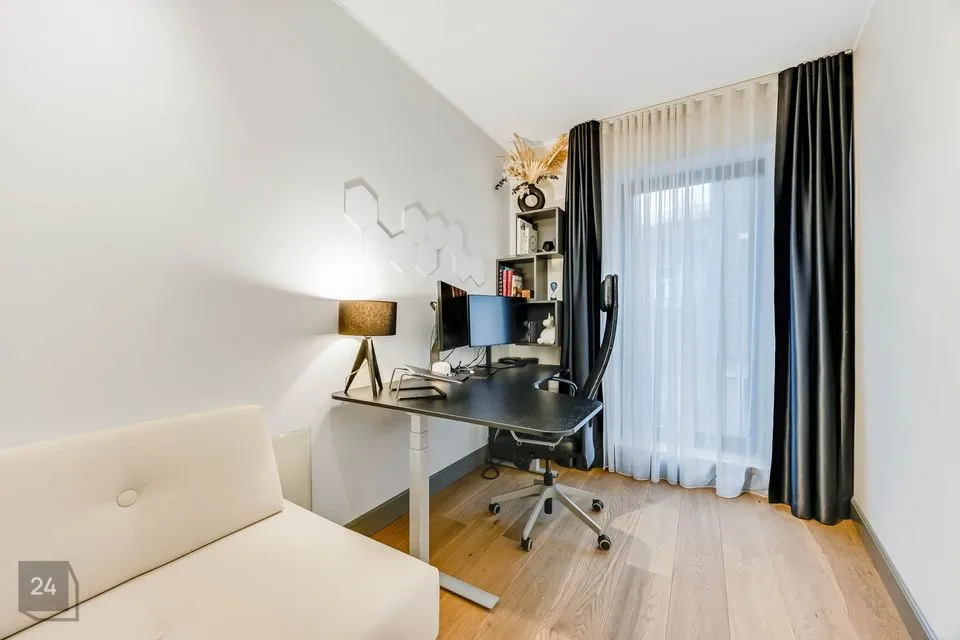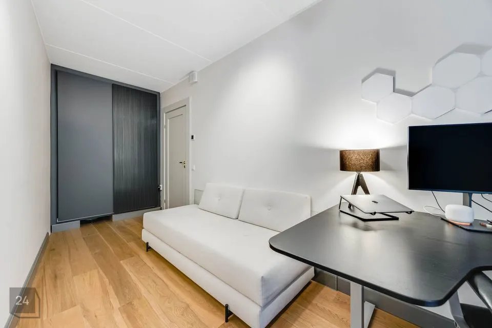 - Kaasaegse kodukontorina kujundatud tuba, mida saab tänu lahtikäivale diivanile lihtsalt kasutada ka teise magamistoana või külaliste majutamiseks.
