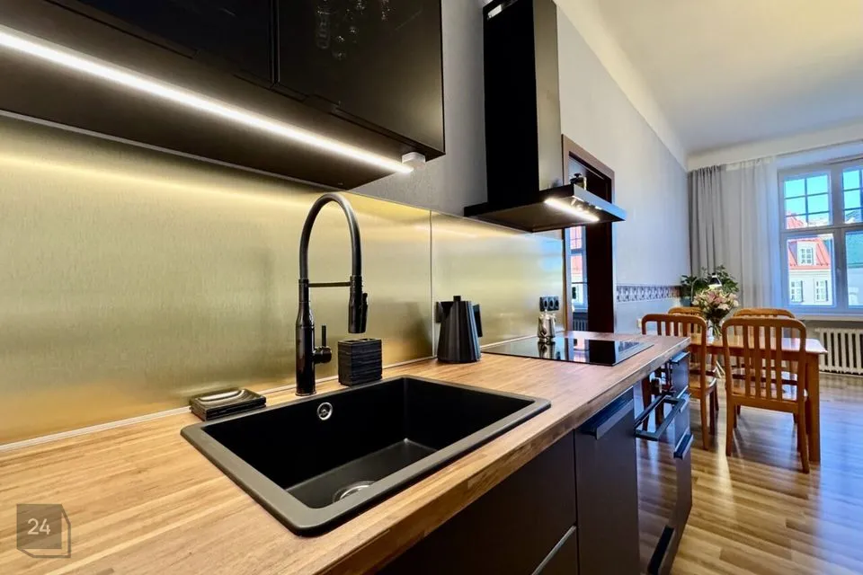 Maja asub ajaloolises piirkonnas Raekoja platsist 350 m kaugusel, ehitatud 1918.aastal ning fassaad on renoveeritud. Korteris on avatud köögiga elutuba, magamistuba, panipaik, WC ja duss koos. Köögis on induktsioonpliit, ahi, nõudepesumasin, puldiga LED valgustus. Korteris on Telia kiire internetiühendus. Majas on naabrivalve, turvauksed ja trepikoda on lukus.