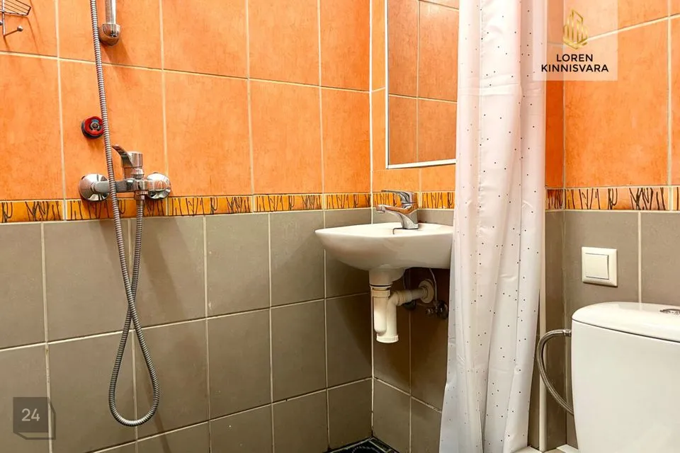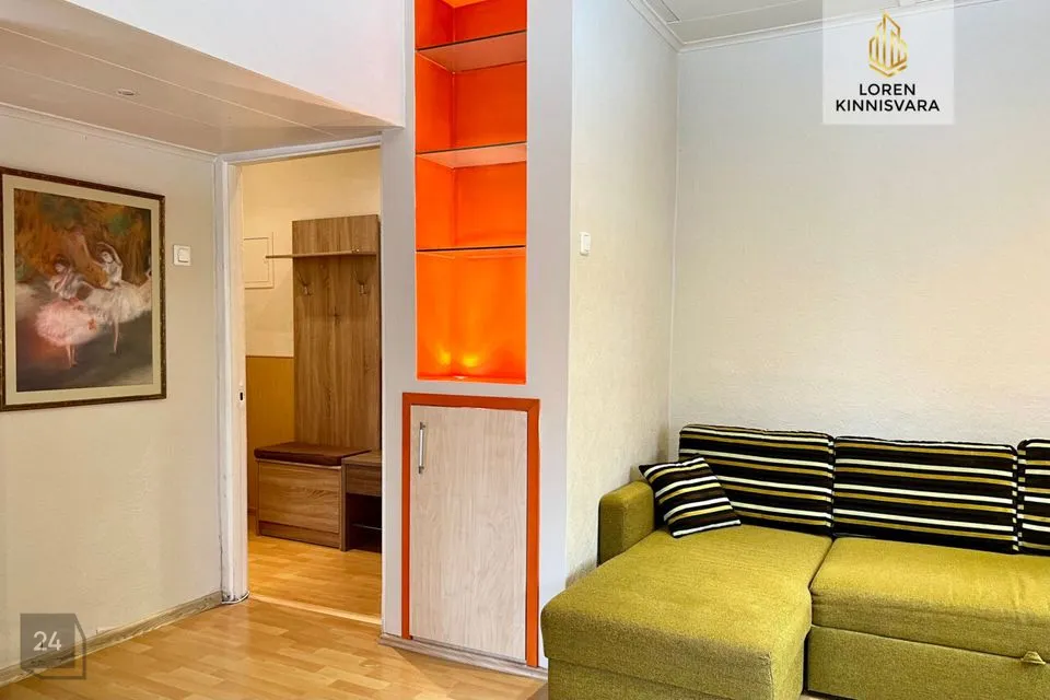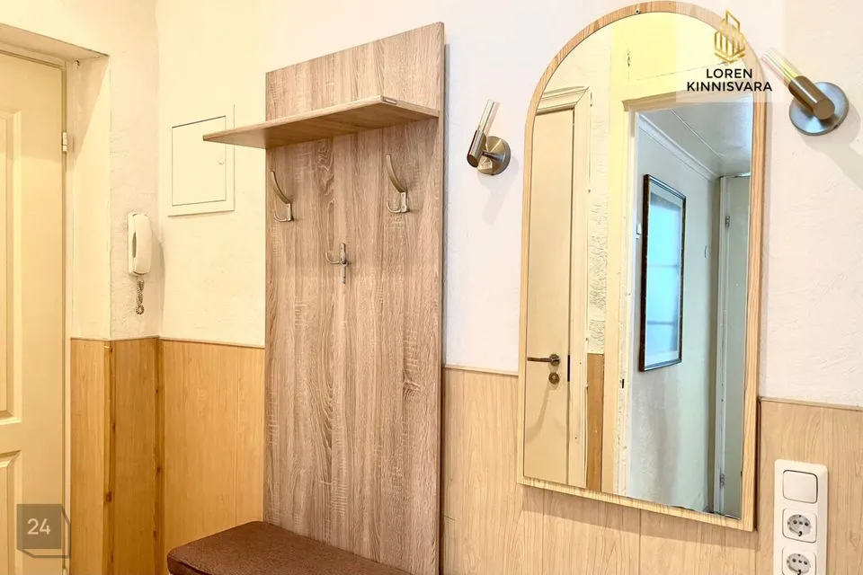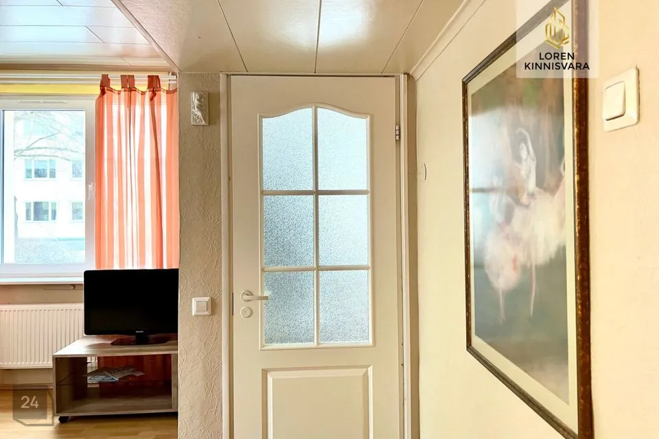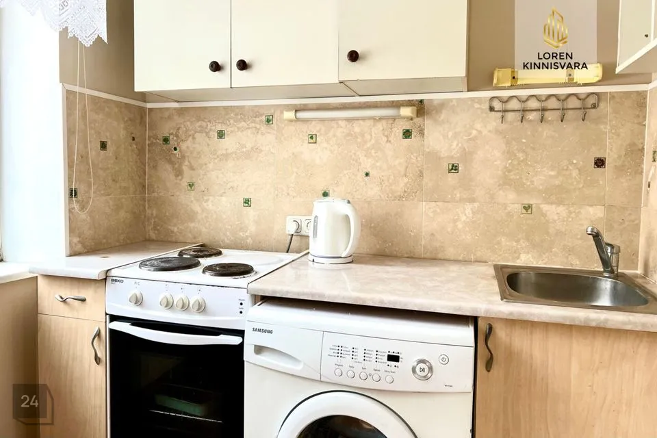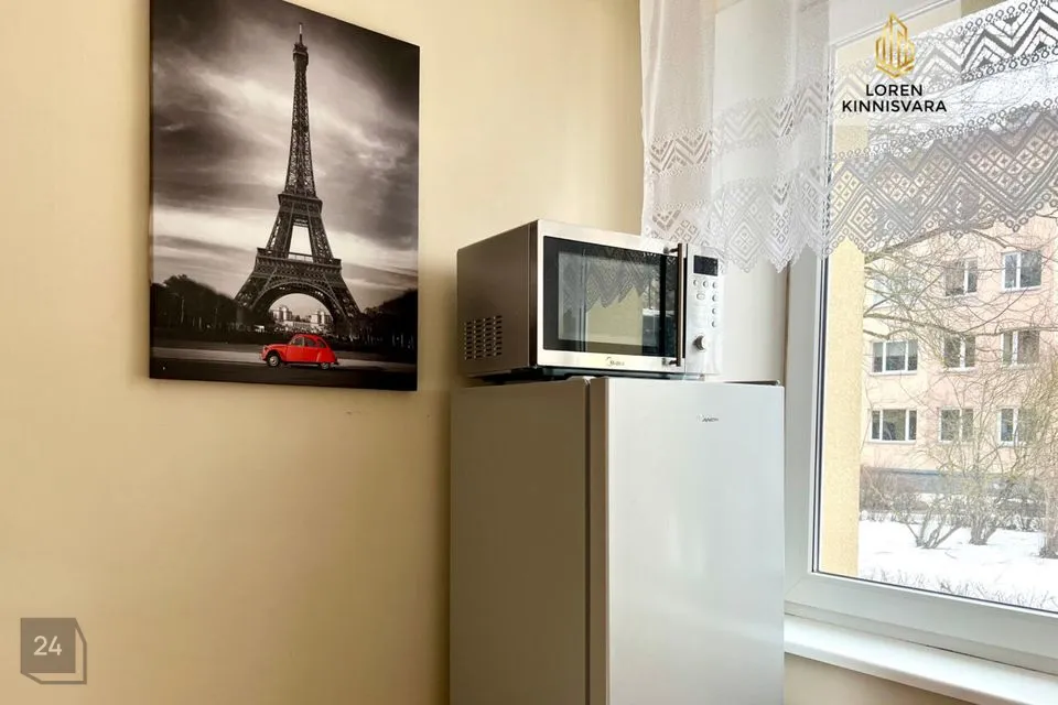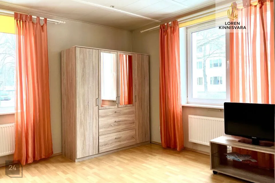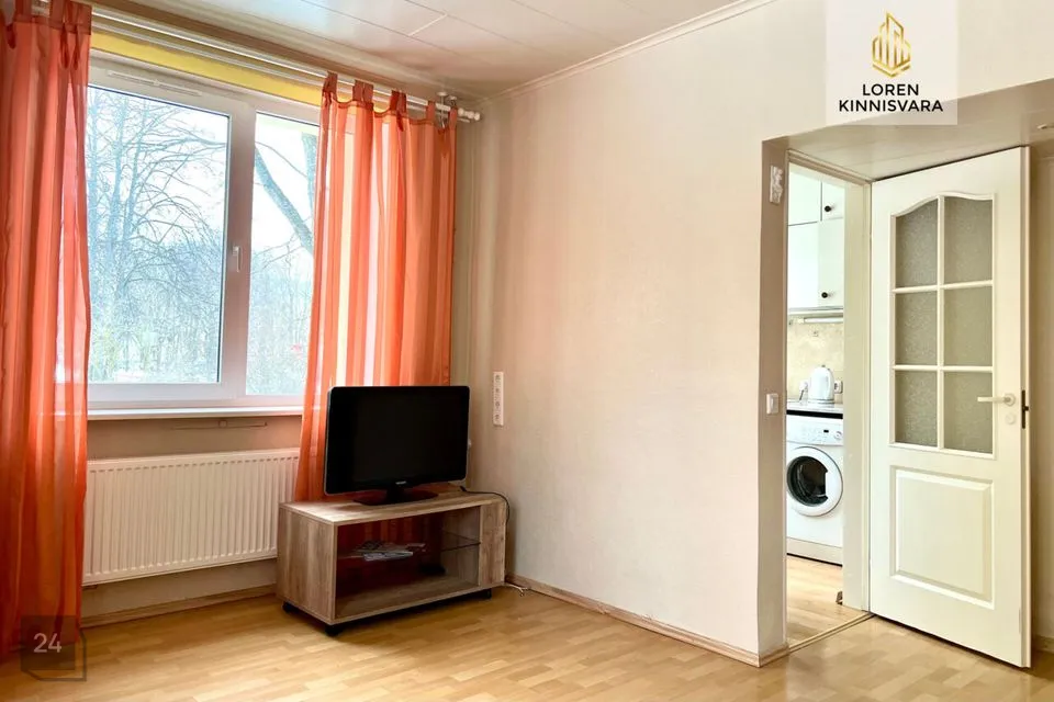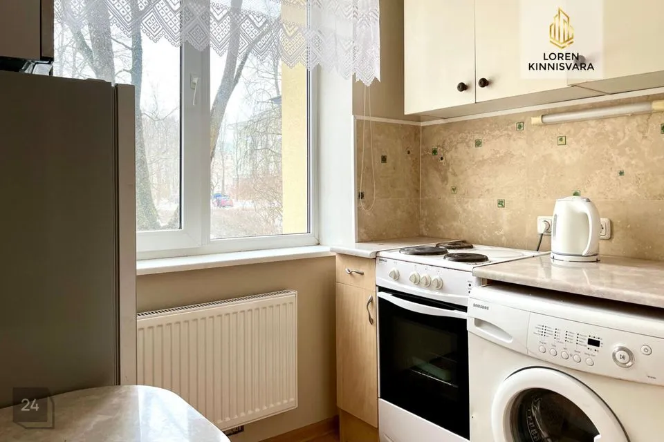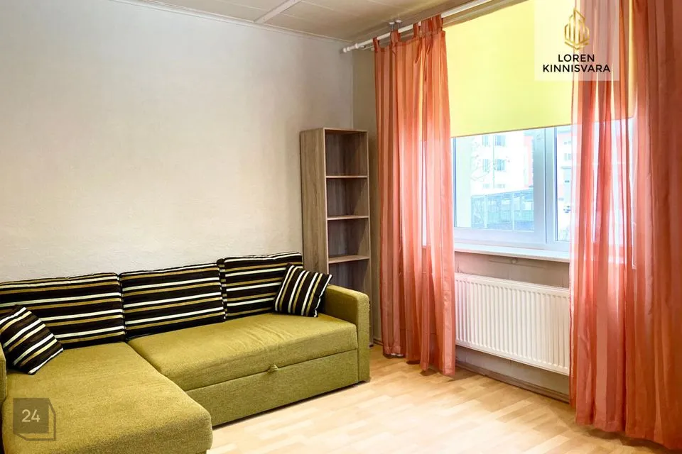 Korter asub 1 korrusel 4-korruselise maja. Korteri koosseisu kuuluvad: esik, elutuba/magamistuba, köök, wc-duširuum (koos). Köögis on köögimööbel koos tehnikaga: elektripliit, külmkapp, mikrolaineahi, pesumasin. Elutoas on diivan, riidekapp, TV. Elutoa diivan käib vajadusel lahti ka voodiks. Wc ja duširuum on keraamilised plaadid. Soe vesi boileriga. Korteris on vahetatud aknad ja radiaatorid, põrandaid katab laminaatparkett. Interneti, kaabel TV valmidus, Telia, Elisa. Aknad hoovi poole, akendest avaneb rahulik vaade haljasalale. Korteris on kõik mugavaks elamiseks olemas. Korter üüritakse välja koos kogu fotodelt nähtava sisustuse ja tehnikaga.