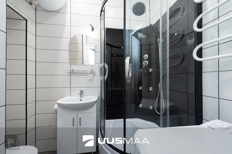 Korter on möbleeritud ja sisustatud kodutehnikaga. WC ja vannituba on koos, vannitoas on olemas pesumasin ja nõudepesumasin