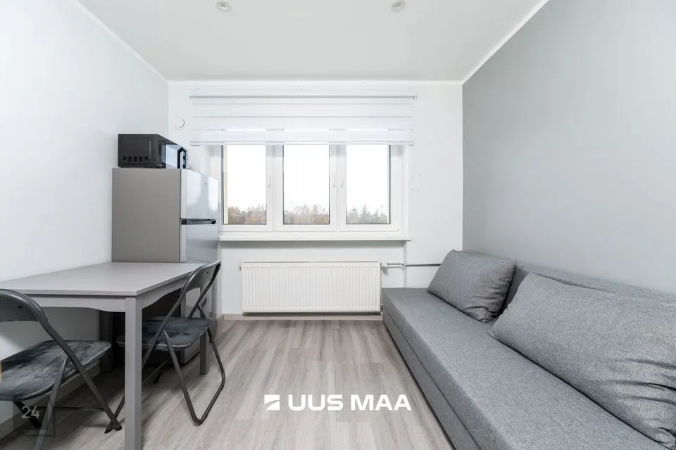 Tegemist on värskelt renoveeritud ja täielikult möbleeritud korteriga, kus on kõik eluks vajalik olemas. Korterisse sisenedes on väike esik koos mahuka riidekapi ja jalanõuderiiuliga. Eluruum on avatud planeeringuga, kuhu on paigutatud diivanvoodi, söögilaud ja toolid.