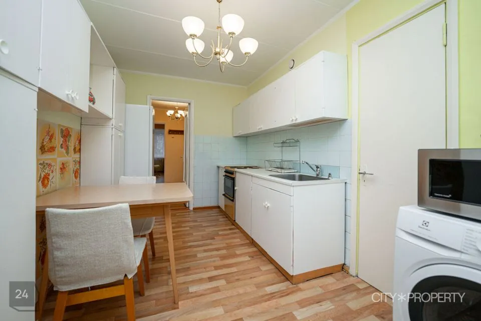 Korter on mugavalt sisustatud, olemas on suured riidekapid asjade hoiustamiseks, voodi, diivan, söögilaud ja toolid elutoas ning kõik vajalik mööbel ja tehnika köögi poolel, samuti pesumasin.