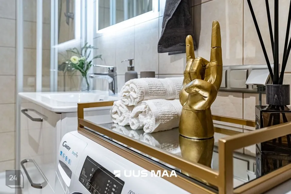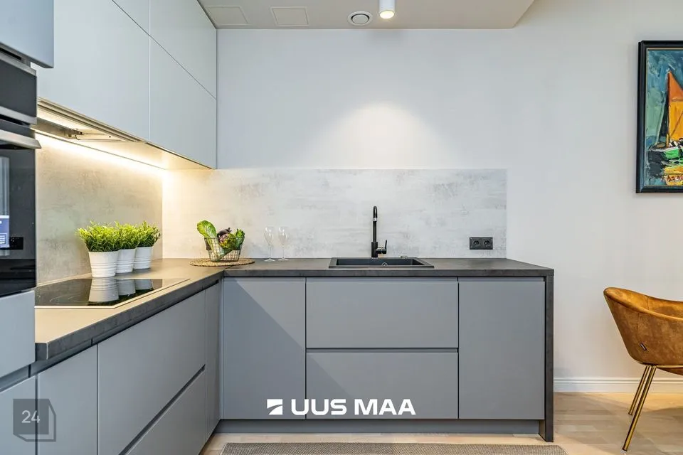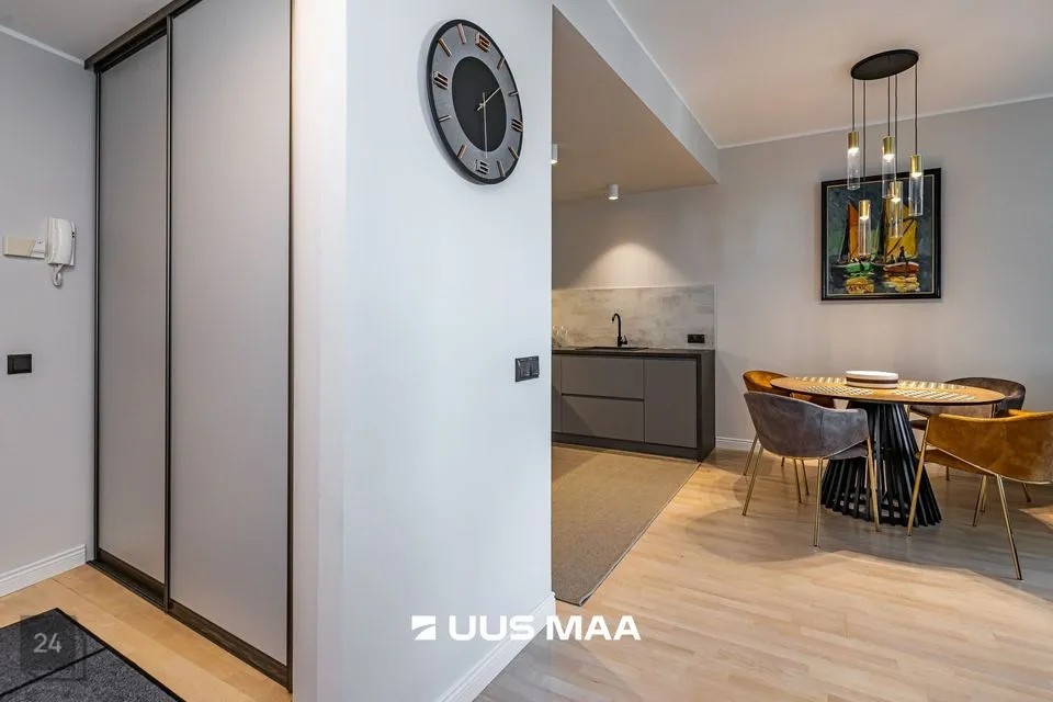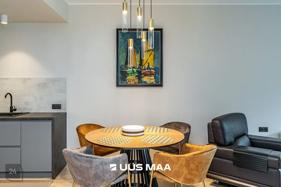 Korter antakse üürile kogu piltidel nähtava sisustusega. SISEKUJUNDUS - elegantne, kontrastne, luksuslik!