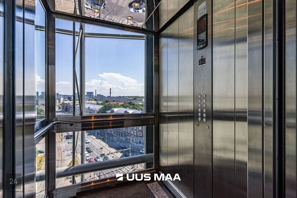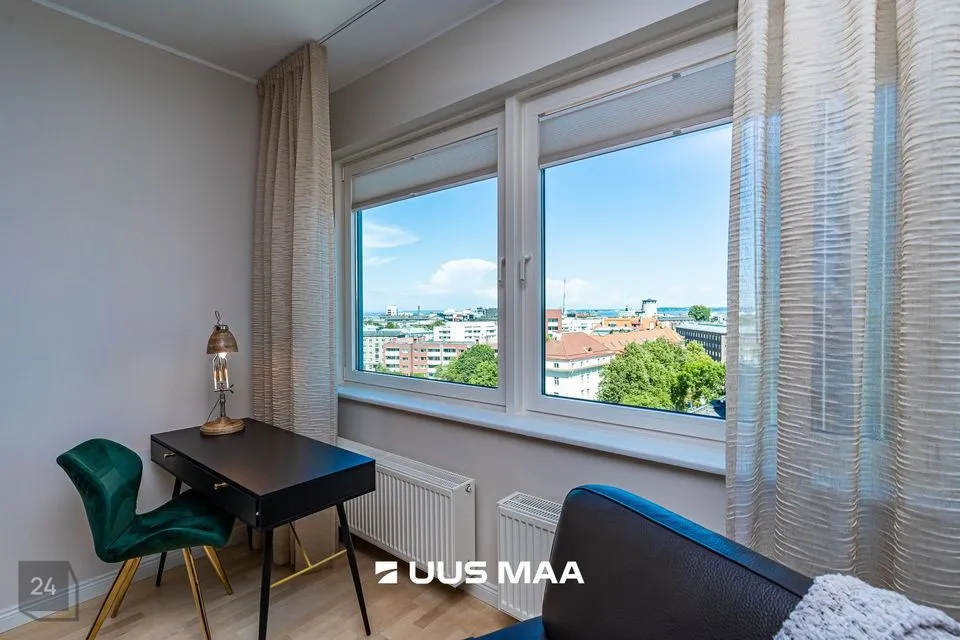 Kaasaegse ning turvalise Tartu mnt 18 elu- ja ärihoone 9. korrusel paikneva korteri akendest avanevad vaated mere suunal. Korterisse paistab kaunis keskpäevane päike. Kõik aknad on avatavad.