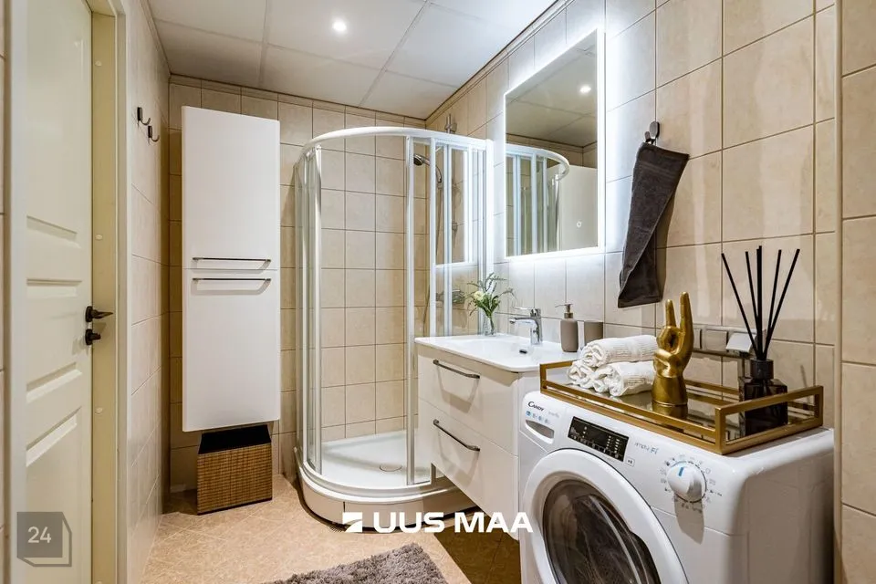 Toad on sisustatud uue eluks vajamineva mööbli ja tehnikaga. Tehnikast on kasutada pliit, ahi, külmkapp, nõudepesumasin ja pesumasin/kuivati. Isiklike asjade paigutamiseks on magamistoas suur garderoobikapp. Köögis on olemas kõik eluks vajalik tehnika. Detailsem info kohapeal.