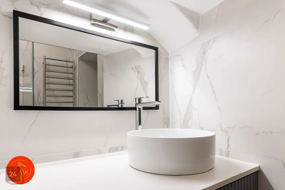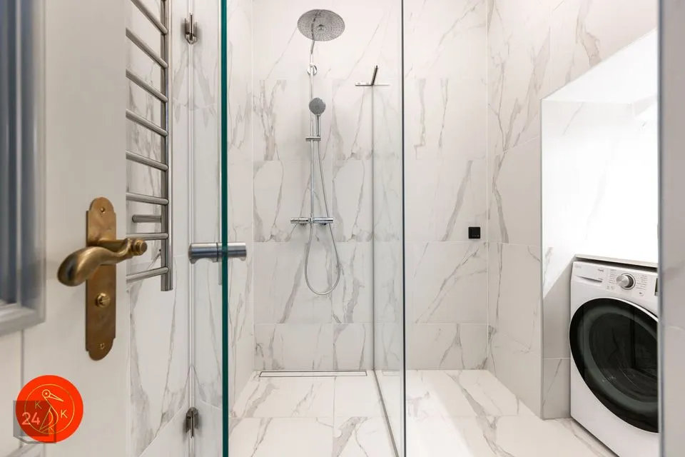 Materjalikasutus sobitub ideaalselt väärika hoone atmosfääriga- põrandatel laiub naturaalsest puidust parkett, vannitubades on keraamilised plaadid kombineeritud sanitaartehnikaga oma ala tippudelt.