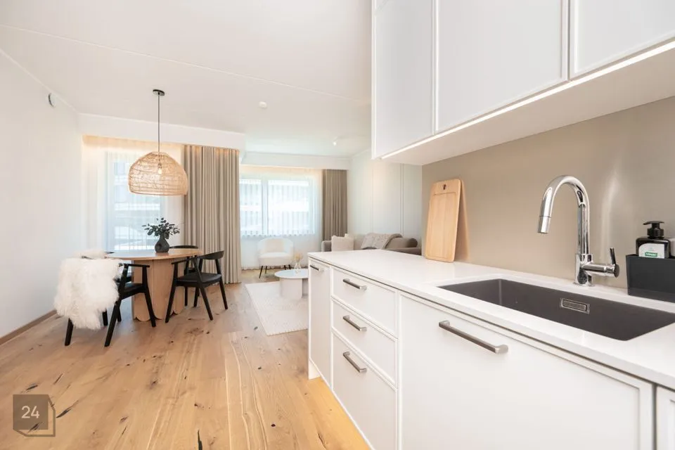 Avatud planeering: valgusküllane elutuba koos kõrgekvaliteedilise köögiga