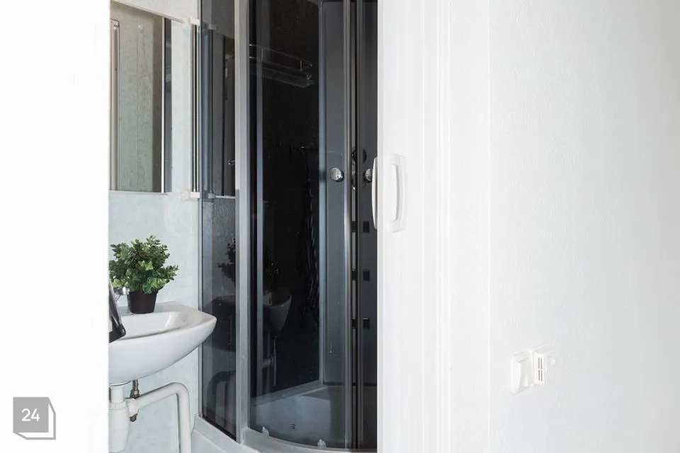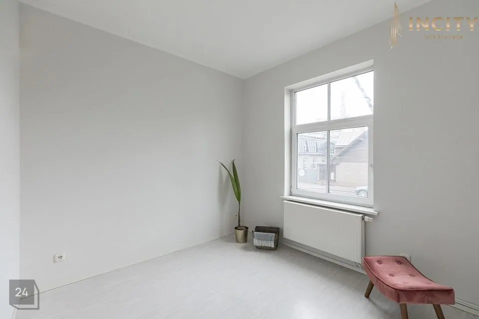Korteri koosseisu kuulub esik, valguskülalne elutuba koos köögiga, magamistuba, vannituba ja wc on eraldi. Aknad jäävad maja kahele küljele. Elutoas on kolm suurt akent.