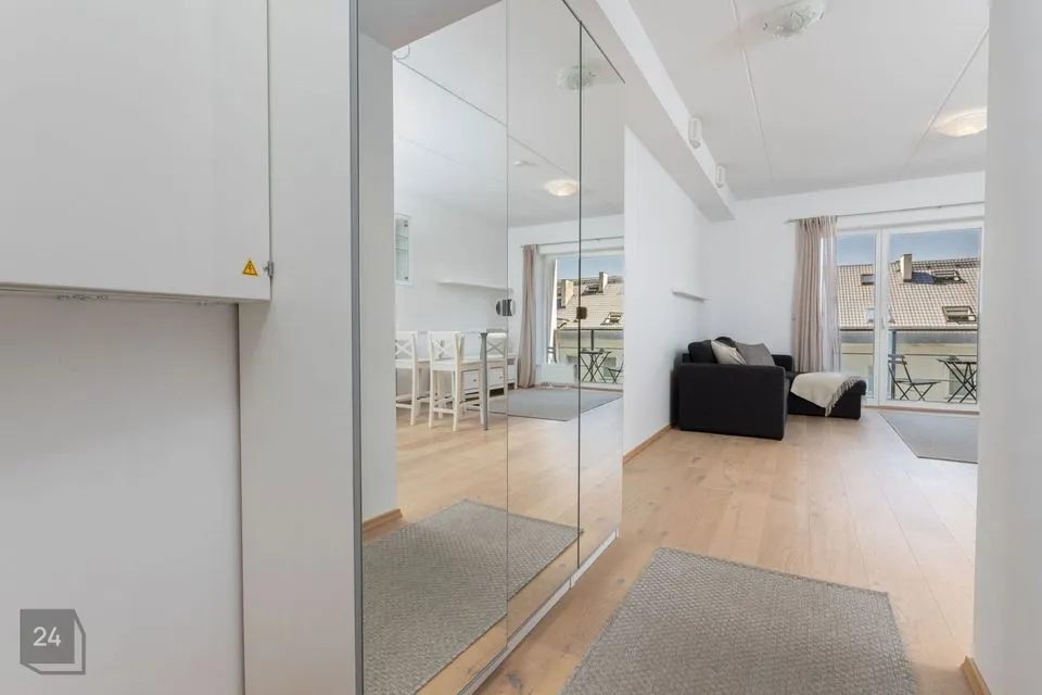 Üürile anda rõduga 1-toaline möbleeritud korter 2014. a valminud kivimajas, mis paikneb sisekvartalis.