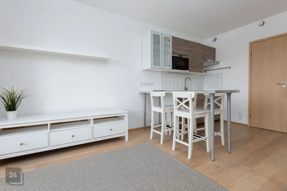 Korteris on köögiosaga tuba, suur rõdu ning tualett-dushiruum.