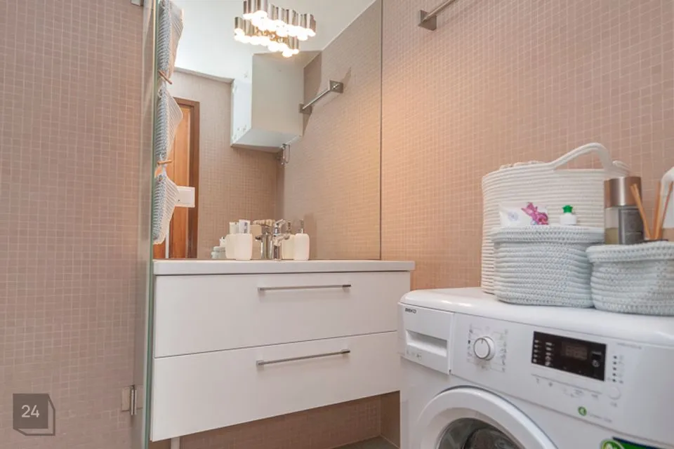 Korteris on olemas kõik eluks vajalik: sisustus, valgustid ja tehnika.