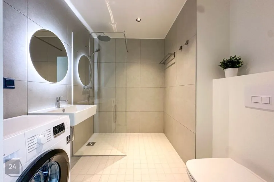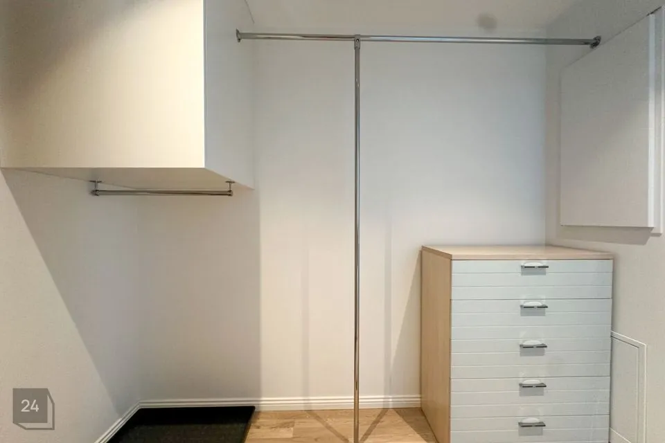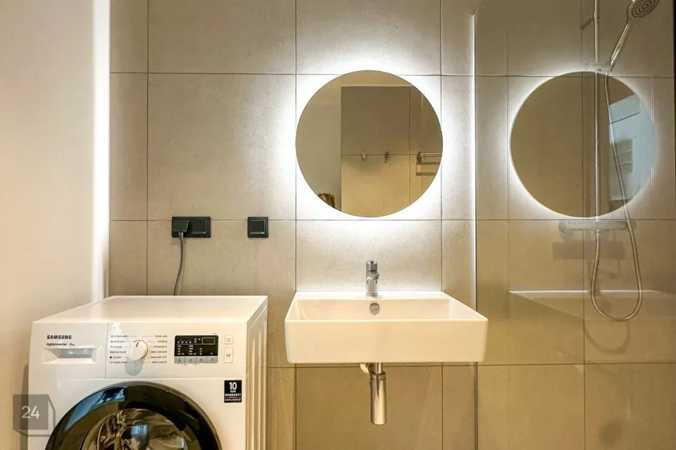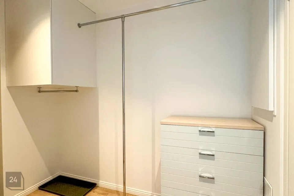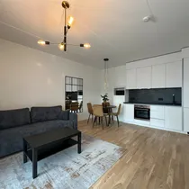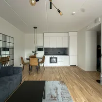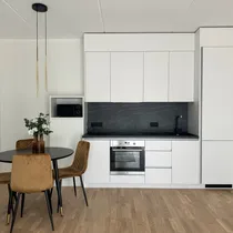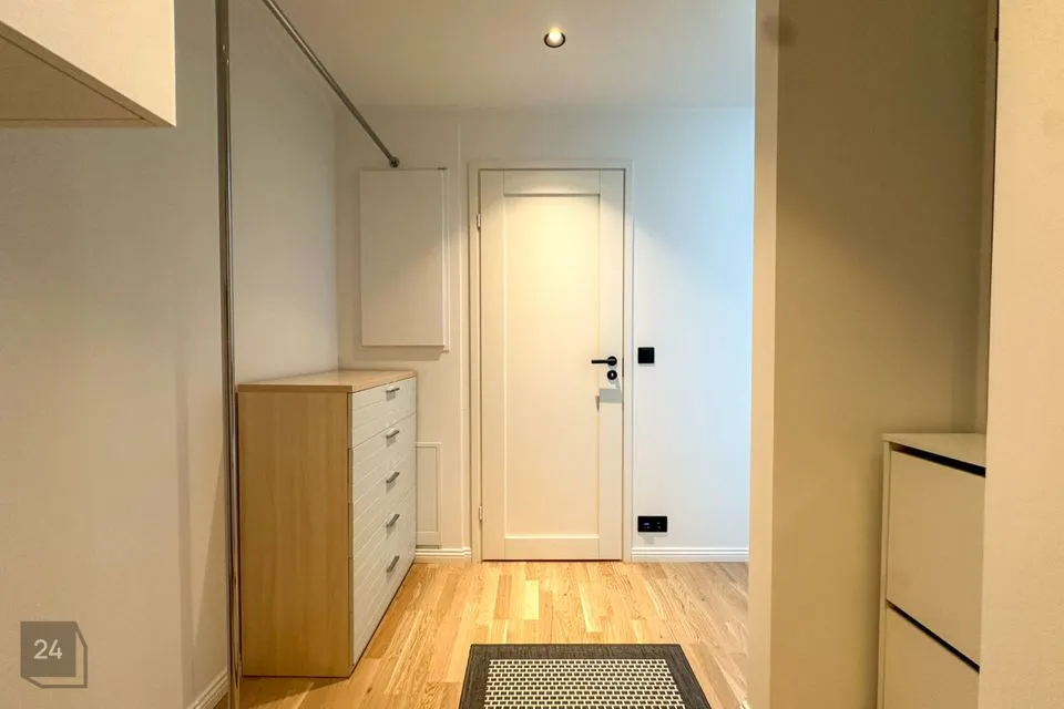 Sisenedes ootab ees praktiline esik, kus on jalanõuderiiul, riidenagi ning mahukas kummut. Kaasaegne köök on sisustatud kvaliteetse integreeritud tehnikaga, sealhulgas külmik, nõudepesumasin, induktsioonpliit, küpsetusahi, köögikubu ja mikrolaineahi. Kaunis söögiala loob mugava koha einestamiseks. Elutoas on diivan, mida saab lahti teha, lisaks diivanilaud ja TV-alus. Vannitoas on dušš, pesumasin.