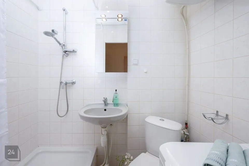 Suureks plussiks on see, et antud korteris on vannituba suurem, kui teistes samalaadsete planeeringutega korterites ning tänu sellele mahub vannituppa pesumasin.