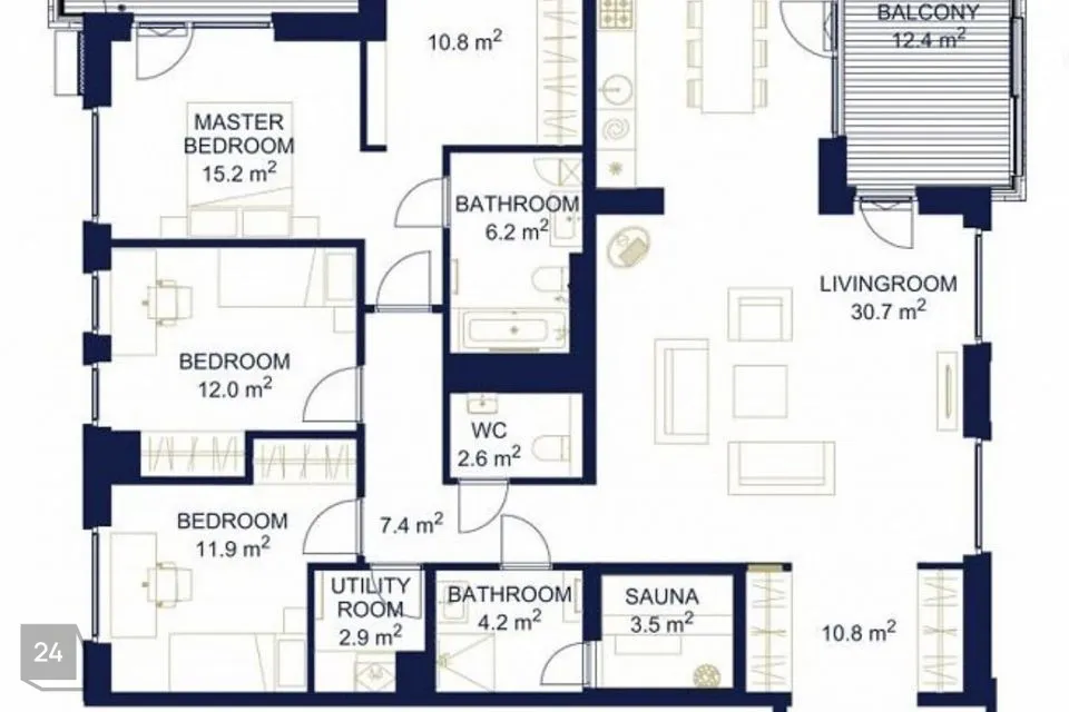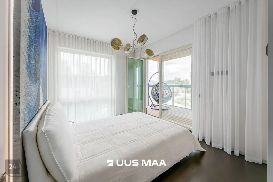 See avar ja luksuslik 4,5-toaline läbi maja planeeringuga korter pakub kõiki mugavusi. Avatud elutuba-köök loob avara ja mõnusa atmosfääri ning klaasitud rõdu toimib lisaruumi ja mõnusa kohana nii igapäevaks kui külaliste võõrustamiseks. Köök on varustatud kvaliteetse Bosch tehnikaga. Korteris on majapidamisruum, saun duššiga ja eraldi tualettruum. Magamistoad paiknevad teistest ruumidest eraldi, luues rahuliku ja privaatse puhkeala. Peamises magamistoas on rõdu merevaatega, privaatne vannituba ja garderoobiala, mida saab kasutada ka kodukontorina.